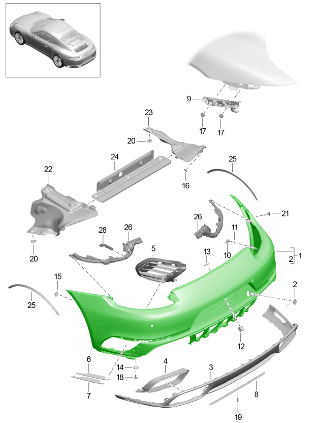 1 x Eckabdeckung hinterer Stoßfänger, oben. Porsche 991.2 Turbo (99150586402OK1