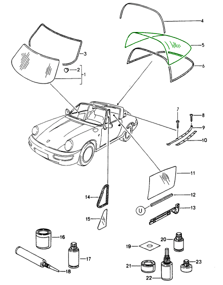 Heckscheibe GRÜN getönt COUPE. Porsche 911/912 65-84 ❭ 90154510130