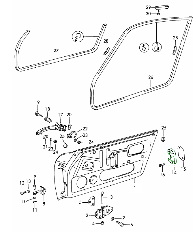 Klassische Porsche-Türkomponenten