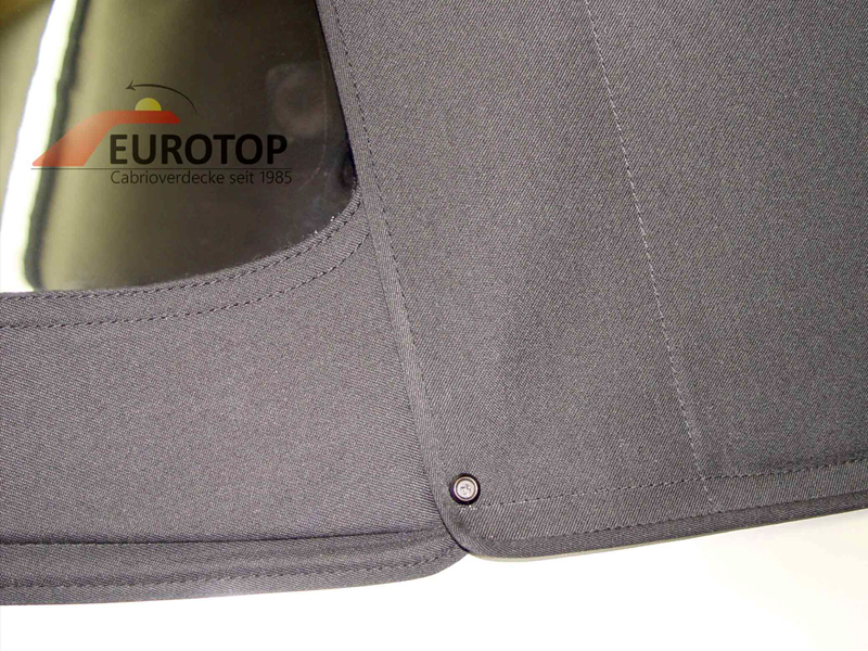 Verdeckplane aus Sonnenland®-Canvas mit separaten Tenax-Verschlüssen. Die Verschlüsse müssen nach der Montage der Plane angebracht werden, um einen sicheren Sitz zu gewährleisten.
