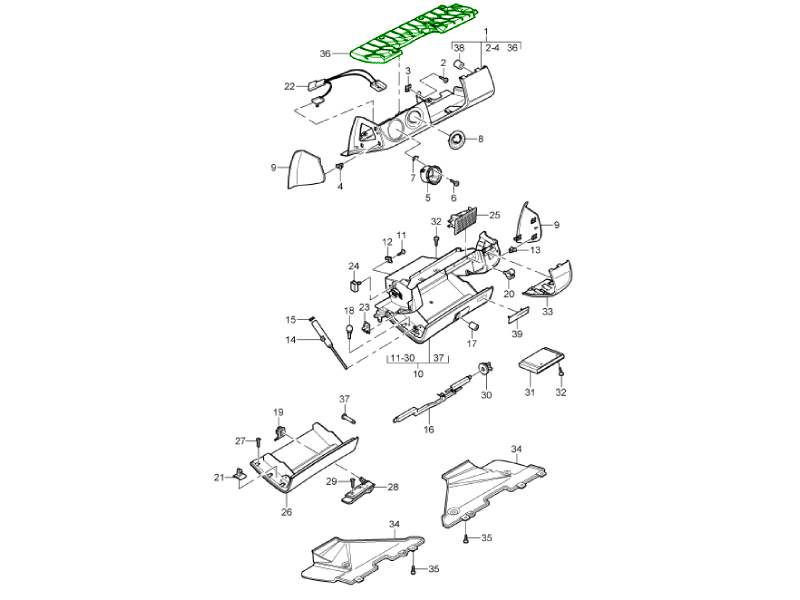 Die Komponenten des Armaturenbretts sorgen gemeinsam für Struktur, Funktion und Stil im Cockpit Ihres Porsche.