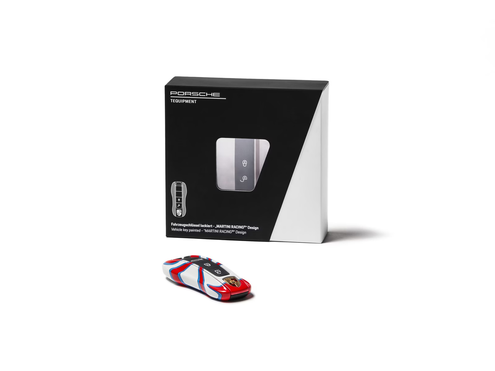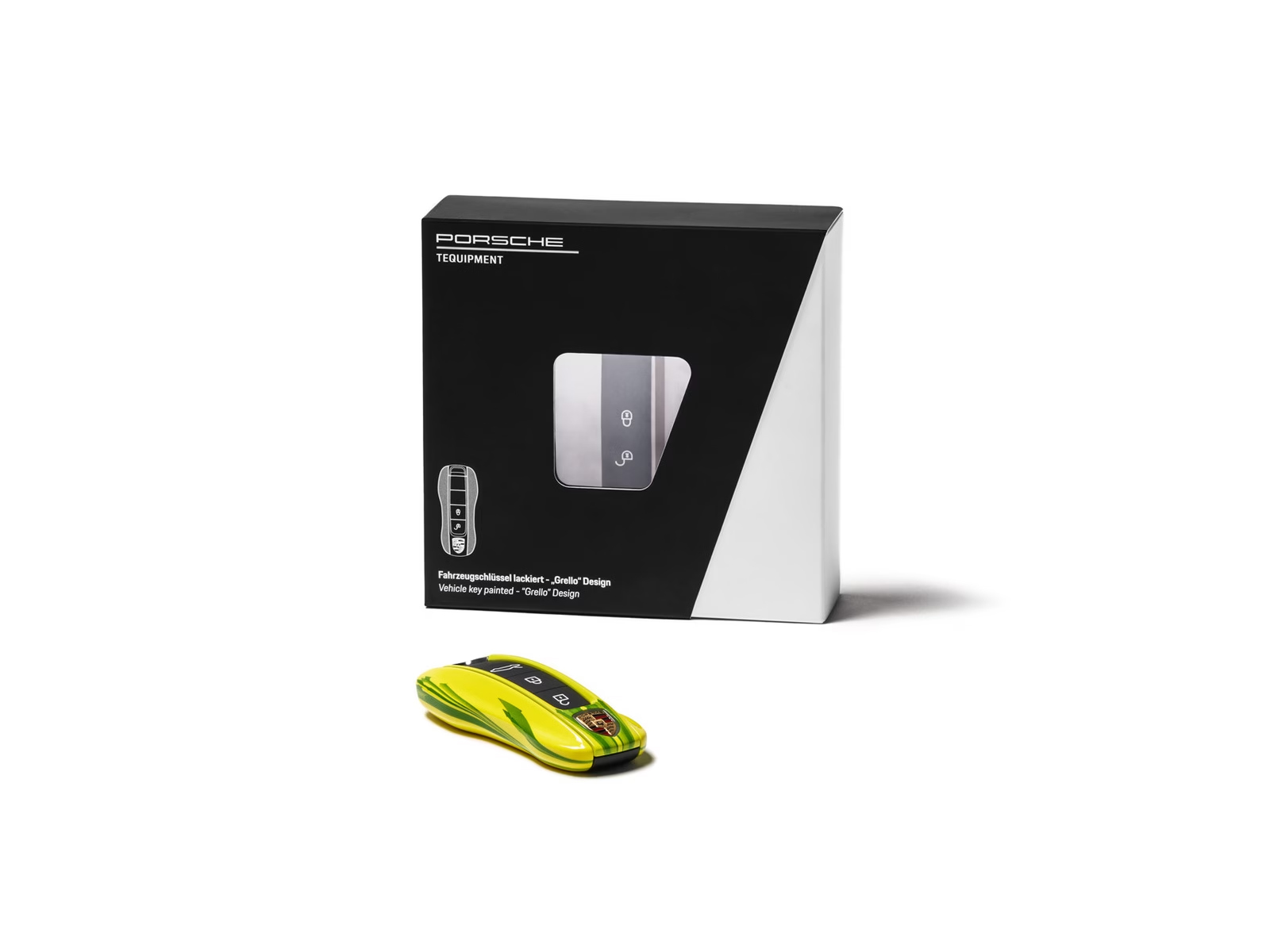 Das perfekte Accessoire für Porsche-Fans: Die lackierten Fahrzeugschlüssel sind in vier kultigen Designs erhältlich.
