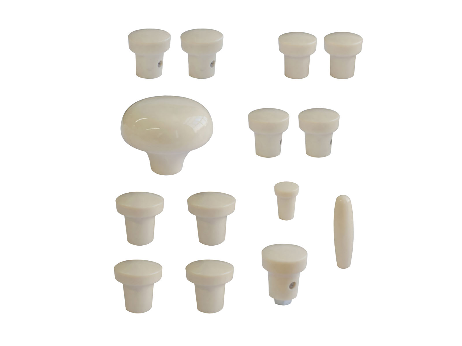 Cada uno está mecanizado y pulido con CNC para recrear las perillas de baquelita originales. Se utilizan inserciones de latón cuando es necesario.