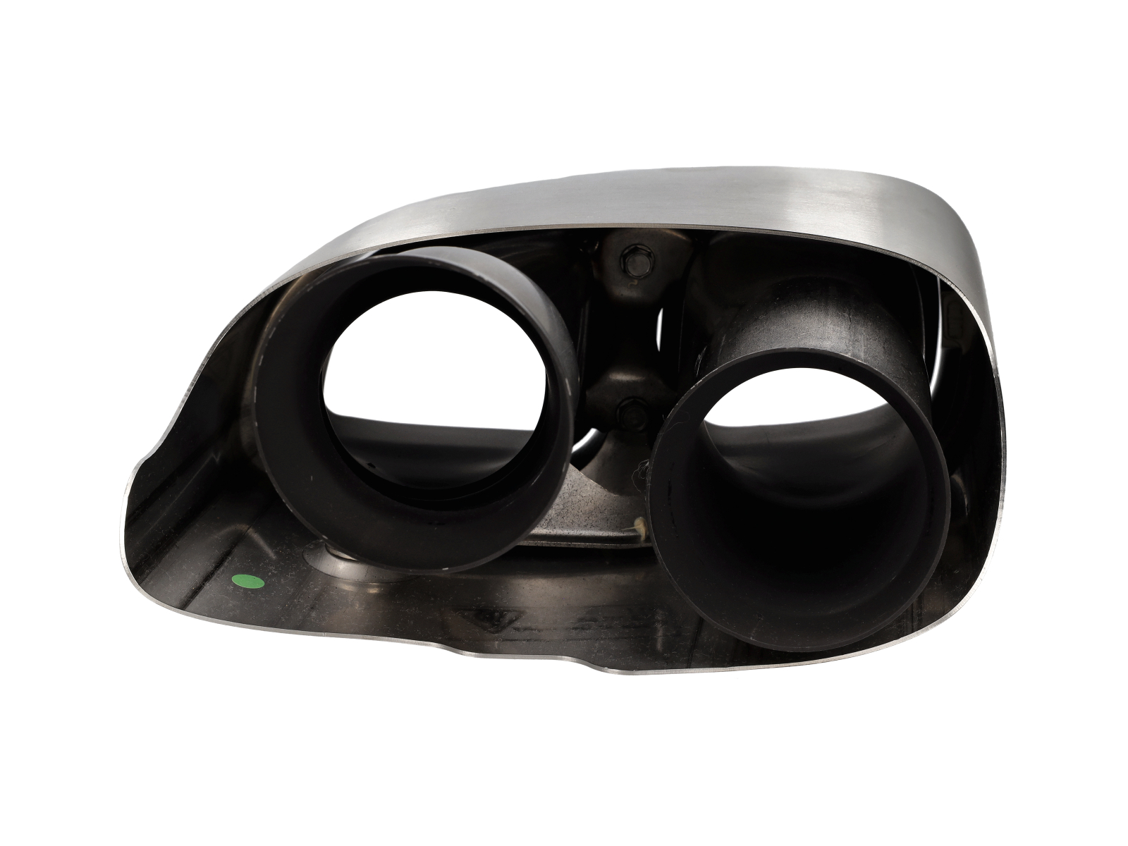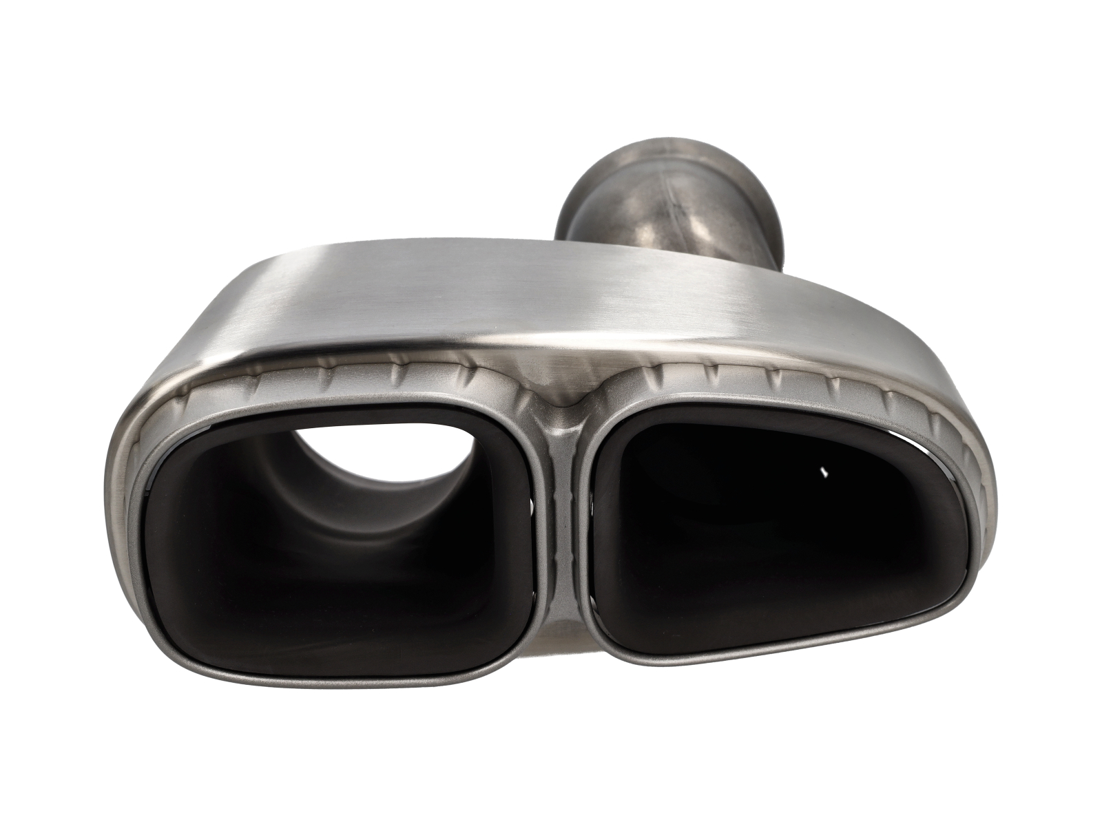 - Estas puntas reemplazan las salidas de escape de fábrica de tu 993 de carrocería ancha, brindando una estética trasera refinada y mejorada: un diseño ovalado de pared simple con corte oblicuo que realza la presencia visual.