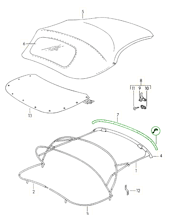 Junta de capota descapotable. Porsche 986 Boxster ❭ 98656139301