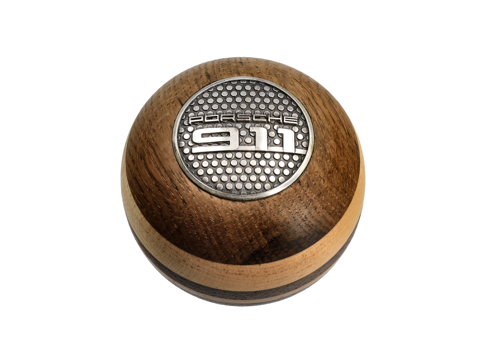 La joya de la corona de esta perilla de cambio es la parte superior plateada estampada, con el Porsche 911 estampado en ella.
