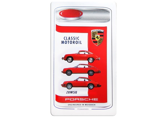 Y si va a usar aceite Porsche original en su Porsche original, necesitará una etiqueta de cambio de aceite en el compartimiento del motor. Porsche Classic ha diseñado uno a la medida.