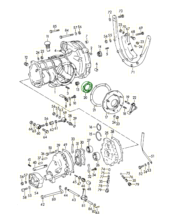 Cada componente juega un papel clave a la hora de sostener y estabilizar el conjunto de la caja de cambios de su Porsche.