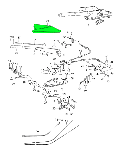 - Palancas y conjuntos de freno de mano Porsche diseñados con precisión.