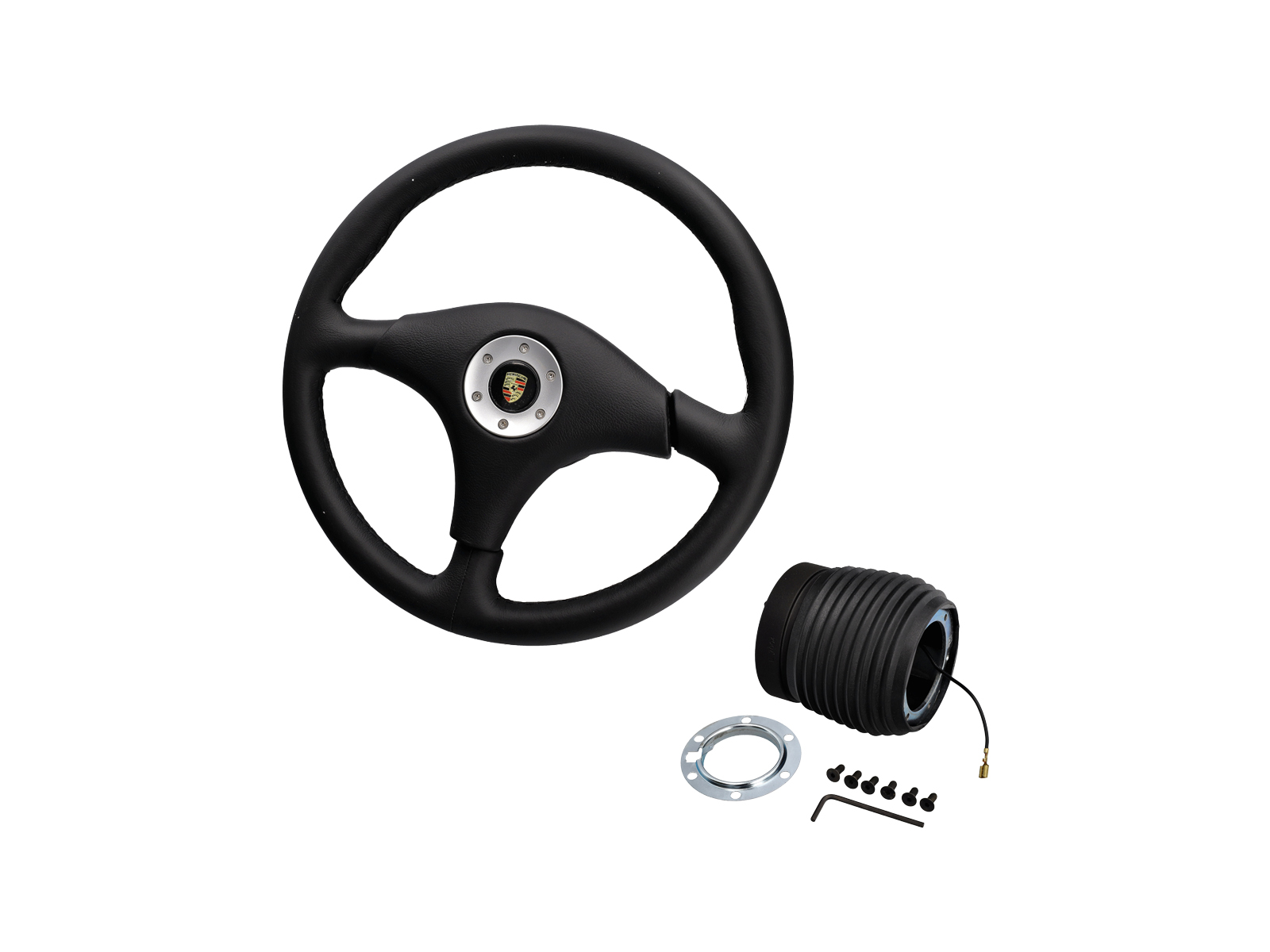 Este volante forrado en cuero es un repuesto de primera calidad diseñado para el Porsche 911 clásico (1969-73) y modelos 914 compatibles. Cuenta con un aro de 380 mm de diámetro, un revestimiento de cuero premium con costuras finas y un estriado de buje diseñado para adaptarse al buje original de la columna de dirección Porsche.