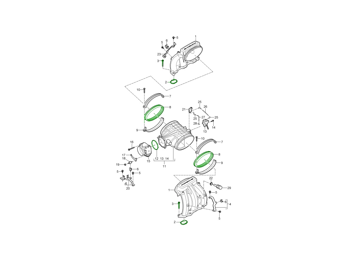 Este completo kit de colector de admisión para el Porsche 997.2 proporciona una solución completa para restaurar el sellado del sistema de admisión y el rendimiento del control del acelerador.