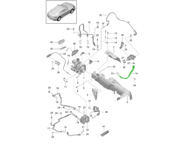Turbocompresor de gases de escape / con: / Protección térmica / Tubería de aceite / Tubería de agua 718C (982C) Cayman 2017>> 202-005