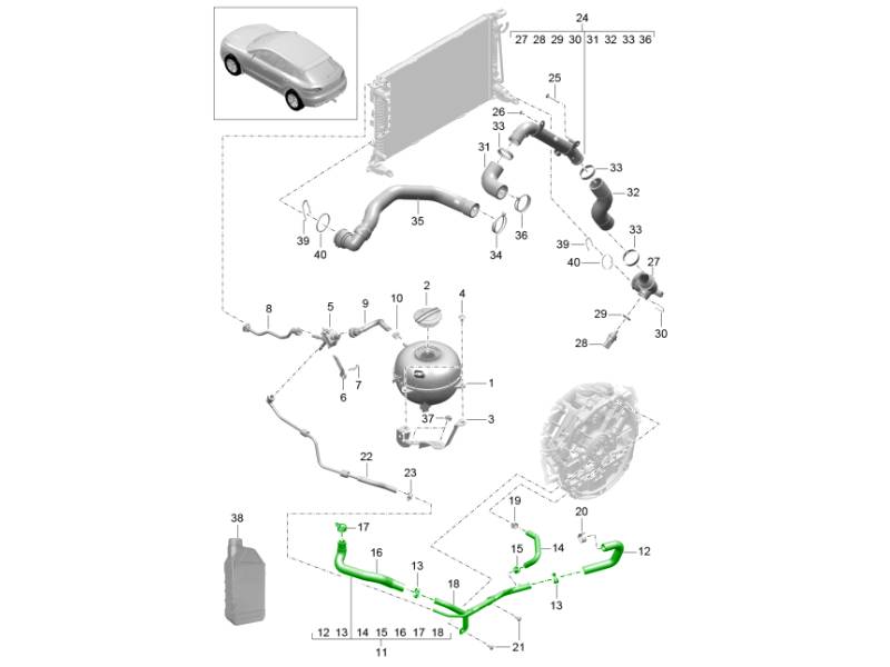 Sistema de refrigeración de refrigerante / Tanque de expansión de refrigerante (Modelo: CTMA,CTM, CTLA,CTL, DCNA,DCN, DHKA,DHK) 95B.1 Macan 3.0L / 3.6L 2014-18 105-040