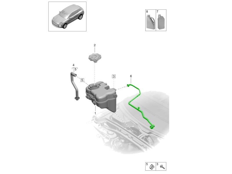 Expansion tank coolant hoses are essential components in your Porsche’s cooling system. They connect the coolant expansion tank (reservoir) to the radiator, water pump, and engine, allowing the system to maintain correct pressure and coolant levels during operation. These hoses ensure that excess coolant flows smoothly between the tank and the rest of the system — preventing overheating, leaks, and pressure loss.