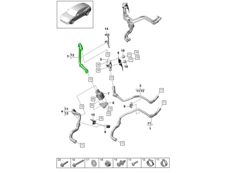 Le tuyau de chauffage est un tuyau de liquide de refroidissement de chauffage conforme aux spécifications d'origine, conçu pour acheminer le liquide de refroidissement chaud du moteur à travers le circuit de chauffage de la climatisation. Ce tuyau assure une circulation optimale du liquide de refroidissement entre les composants du système de chauffage, garantissant ainsi un chauffage constant de l'habitacle et un fonctionnement stable du système de refroidissement. Il offre un ajustement précis, une excellente résistance à la chaleur et à la pression, ainsi qu'une grande durabilité. Conçu pour les modèles Porsche Panamera (971 et 976), ce tuyau de chauffage contribue à maintenir des performances de chauffage fiables et une efficacité globale du système de refroidissement optimale.