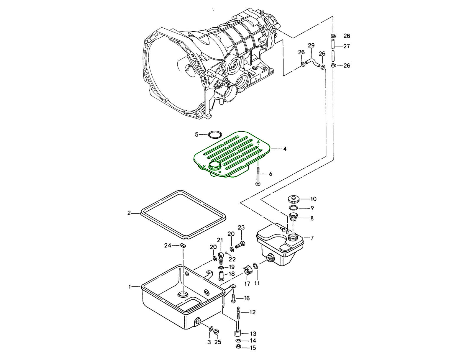 Il s'agit d'un filtre à huile de boîte de vitesses d'origine Porsche (crépine d'huile) pour la transmission automatique Tiptronic de la Porsche 968. C'est le filtre interne spécifié par le constructeur, placé dans le carter de transmission pour filtrer les impuretés du circuit d'huile de boîte automatique.