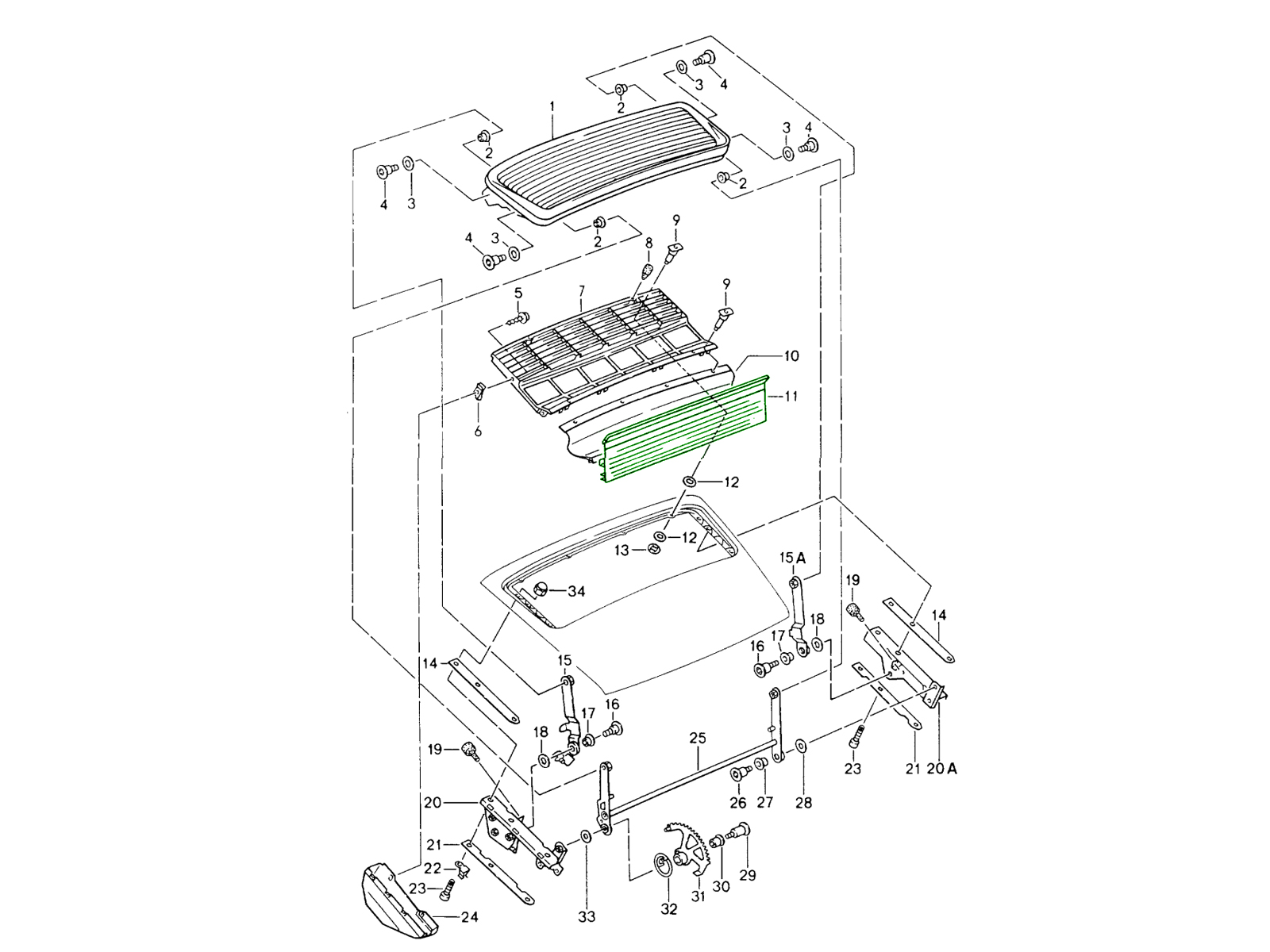 Fonction : Installé entre le tablier arrière et le dessous du capot moteur/aileron, ce panneau d'origine forme une barrière qui renforce la structure arrière de la carrosserie et s'aligne avec le mécanisme de l'aileron. Il assure un débattement correct de l'aileron et contribue à préserver l'harmonie visuelle de la partie arrière de la carrosserie.