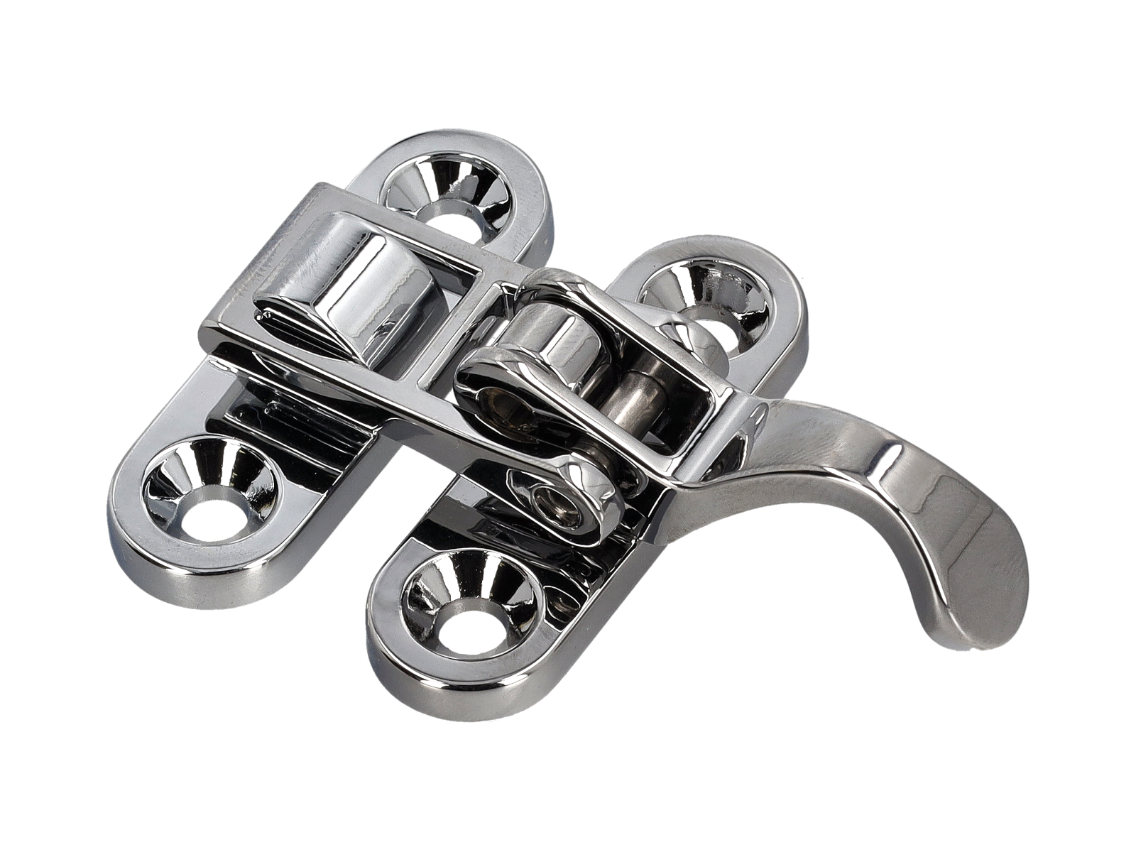 Loquet de capote d'origine pour Porsche 356 Speedster, Cabriolet et Roadster. Conçu avec précision pour correspondre à la quincaillerie d'origine, ce loquet robuste maintient solidement le toit en place, garantissant un ajustement parfait, un habitacle silencieux et un look authentique. Il est composé d'un loquet et d'un crochet – généralement deux par voiture (un de chaque côté) – qui s'enclenchent lorsque la capote est fermée.
