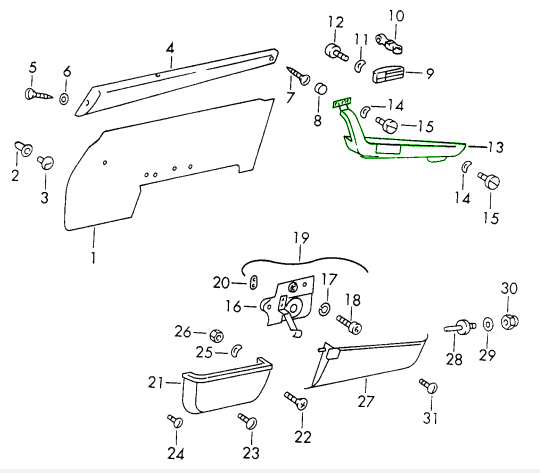 - Mécanismes de poignée de porte intérieure à partir de 1974 requis pour une utilisation sur les modèles 1965-73 (voir ci-dessous)