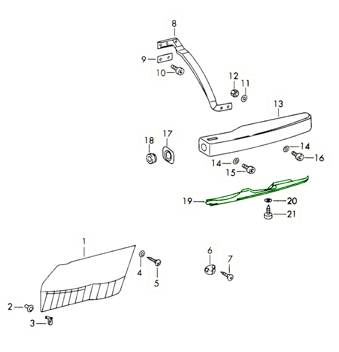 - Les véhicules de 1965 à 1973 nécessitent l'installation de mécanismes de poignées de porte intérieures de 1974 et plus, avec câbles Bowden, ressorts de tension et clips de fixation. Les références et quantités de toutes les pièces nécessaires sont indiquées ci-dessous.
