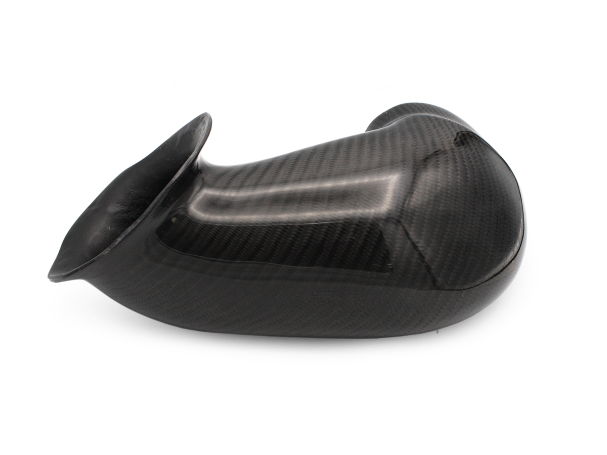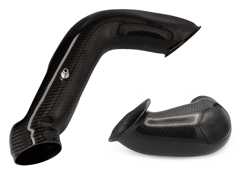 Conduit de chauffage. Il s'agit d'une réplique du conduit de chauffage d'origine Porsche RS léger, monté d'usine sur tous les modèles RS légers 3,6 litres. La pièce Porsche d'origine est en plastique rotomoulé bon marché et peu esthétique, avec des lignes de joint apparentes, tandis que cette réplique fidèle est en fibre de carbone. Elle permet un gain de poids de 4 kg à l'arrière des 964 et 993. Non compatible avec les C2 Turbo/965. Elle remplace le bloc moteur de ventilation et le conduit, tout en assurant une excellente diffusion de la chaleur, à l'instar de la pièce d'origine RS. Ce tube en fibre de carbone véritable, recouvert d'un vernis transparent, offre un aspect épuré au compartiment moteur et facilite les interventions sur celui-ci.
