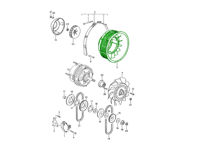 Sangle de carter de ventilateur/turbine d'alternateur Porsche d'origine pour 911 (993). Assure un ajustement parfait, un alignement correct et un refroidissement fiable.