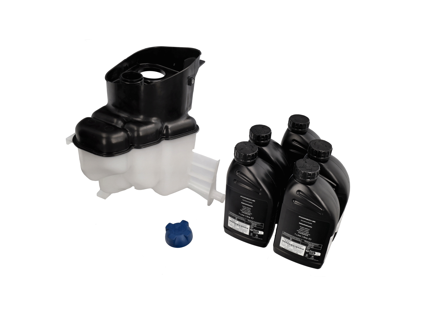 Ce kit réunit le vase d'expansion, le bouchon, le liquide de refroidissement longue durée et un capteur de niveau de liquide de refroidissement dans un seul ensemble complet.