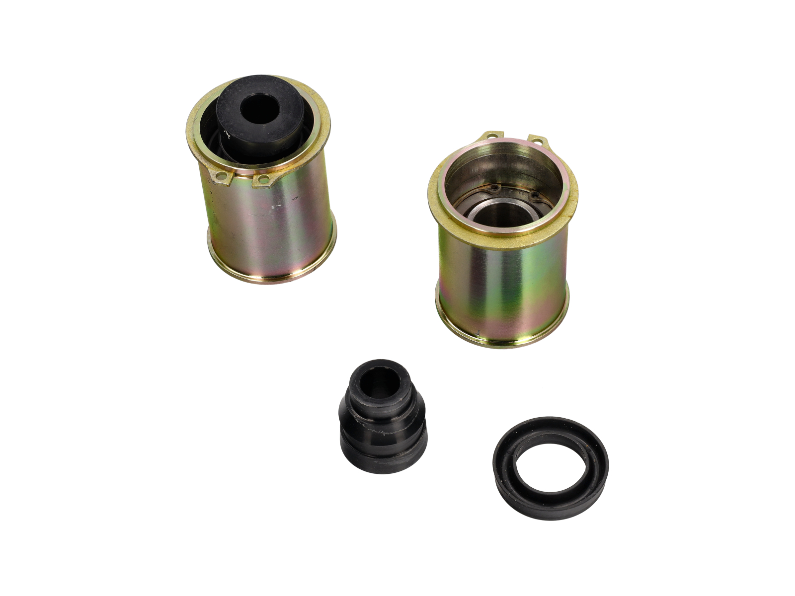 Le kit de douilles de bras de poussée haute densité pour les 996 et 986 Boxster est un excellent moyen de perfectionner davantage votre configuration de suspension. Ces bagues offrent les avantages d'un duromètre plus dur sans le bruit et la dureté de roulement associés aux bagues en aluminium massif. Une excellente option pour les véhicules à double usage rue/piste qui veulent une autre mesure de capacité de réglage et de stabilité sans sacrifier la qualité de conduite.