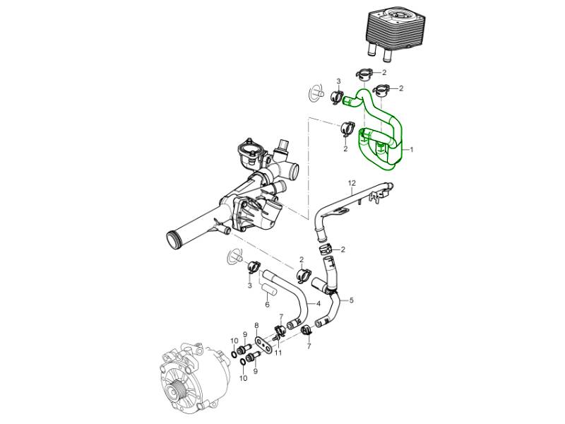 Le tuyau de liquide de refroidissement est un composant du système de refroidissement conforme aux spécifications d'origine, conçu pour transporter le liquide de refroidissement du moteur entre les principaux éléments du circuit de refroidissement. Fabriqué pour résister aux hautes températures, aux variations de pression et aux cycles thermiques constants, ce tuyau garantit un débit de liquide de refroidissement fiable et une régulation stable de la température du moteur.