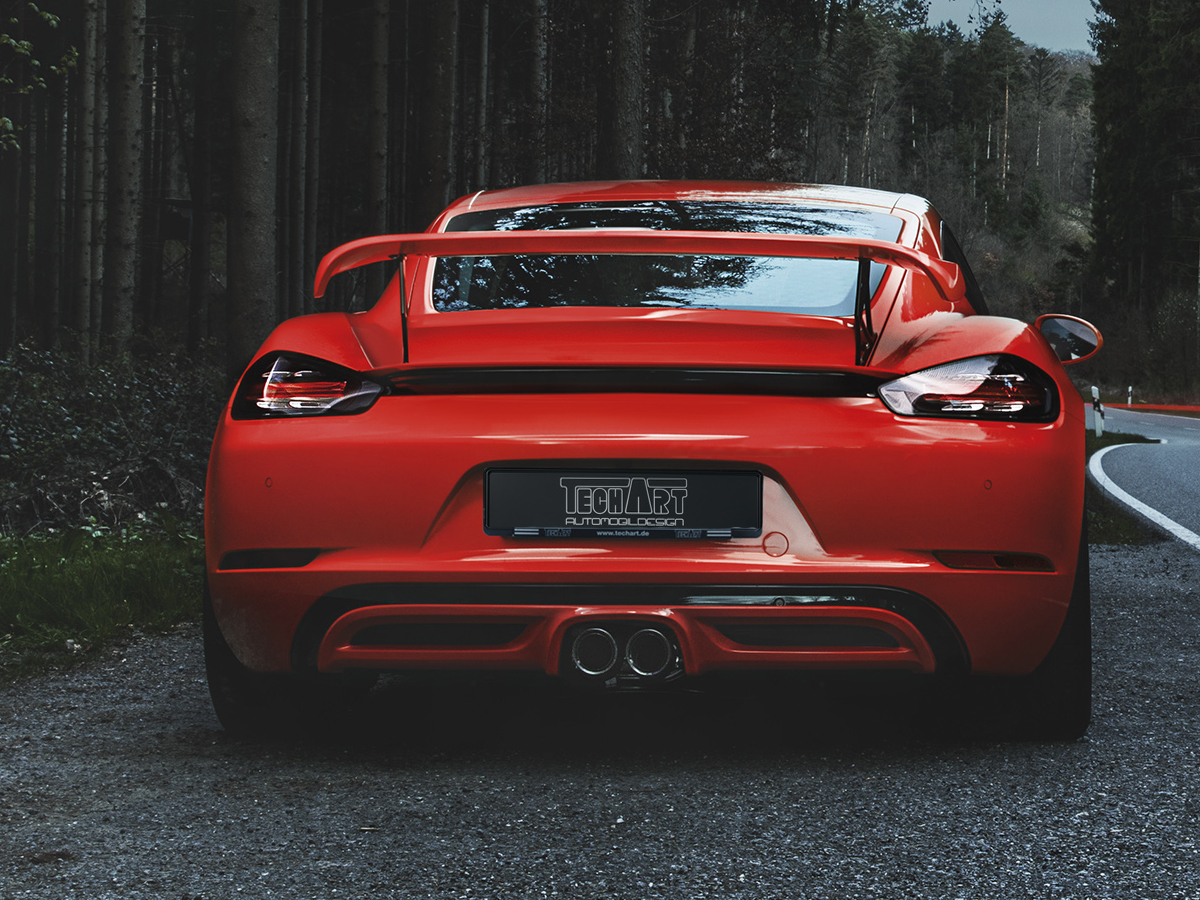 Le becquet arrière TECHART I présente un profil d'aile couleur carrosserie monté sur le couvercle du coffre.