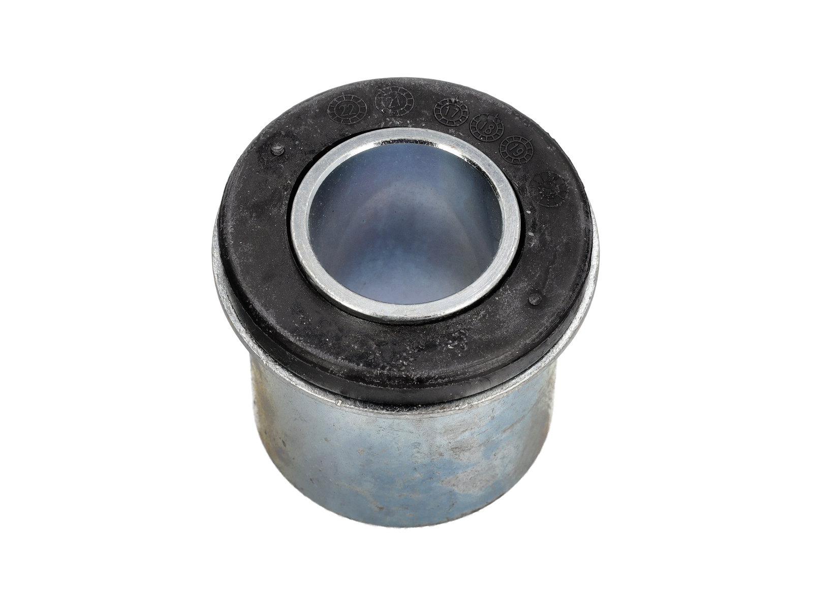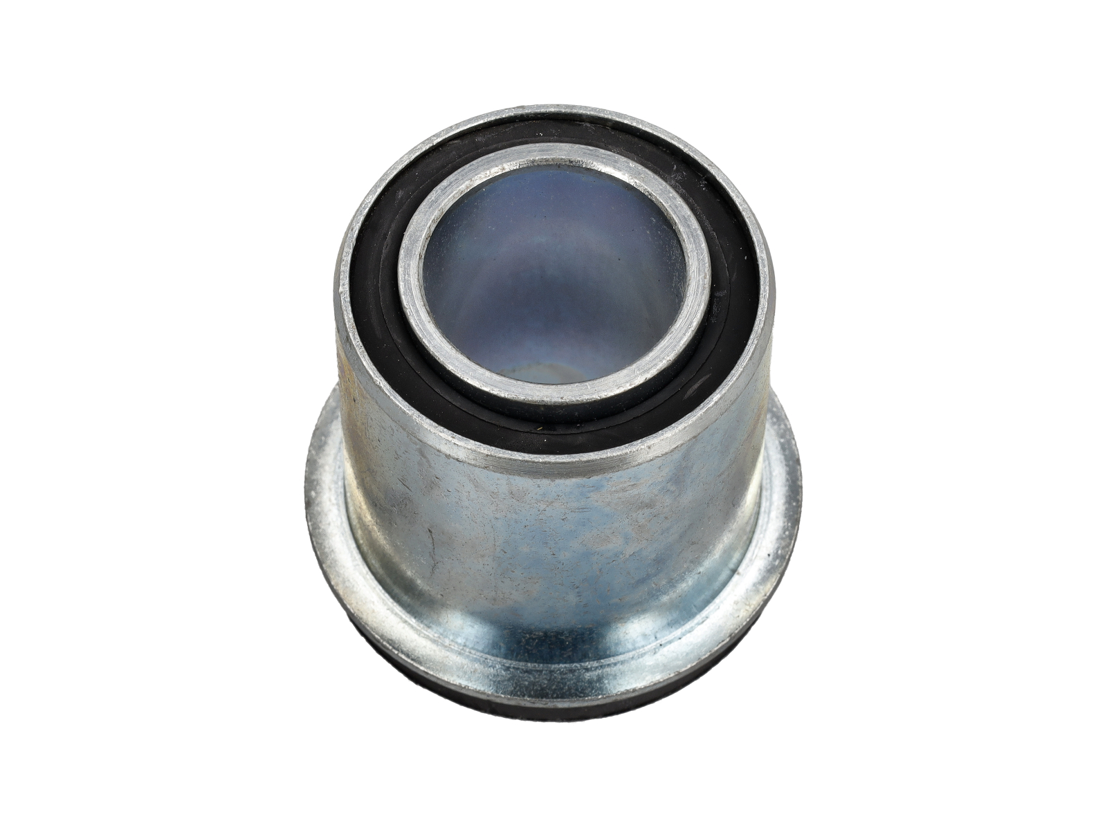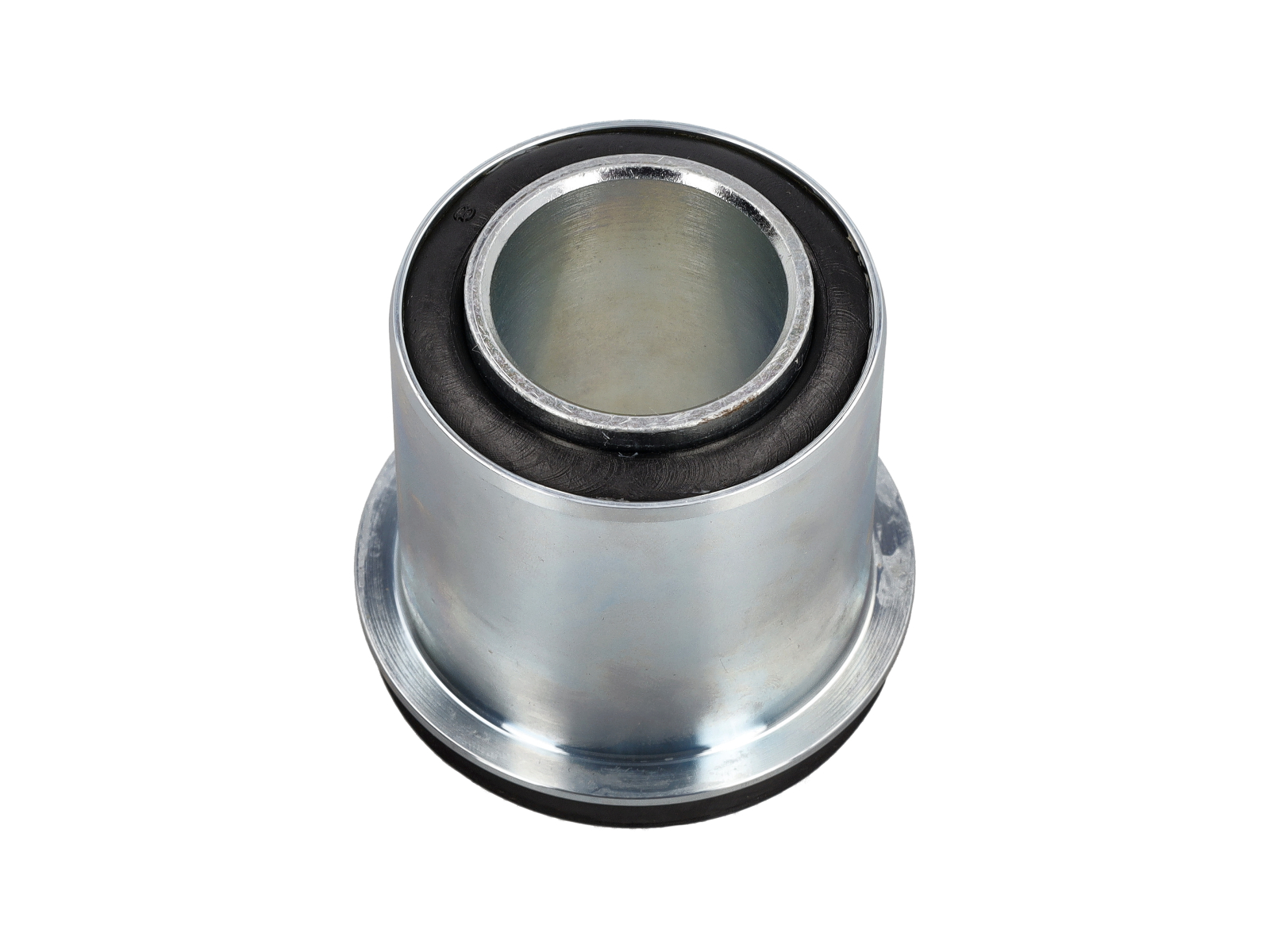Silentbloc de remplacement pour le support auxiliaire avant qui soutient les éléments de suspension et de direction des premiers modèles Porsche 911 et 912. Ce silentbloc amortit et fixe le support au châssis ou à la carrosserie, contribuant ainsi à isoler les vibrations de la route, à maintenir l'alignement et à garantir une géométrie de suspension stable.