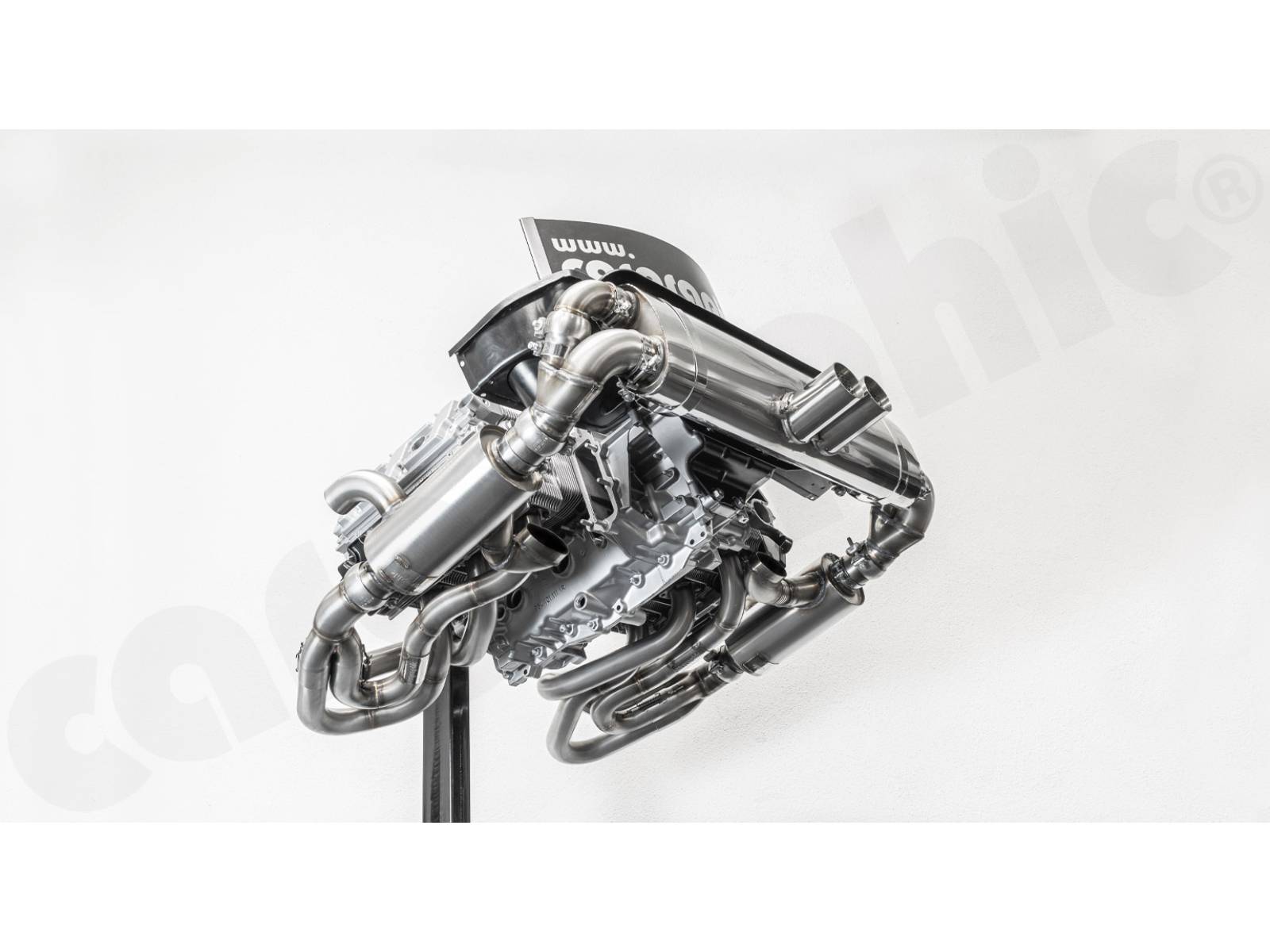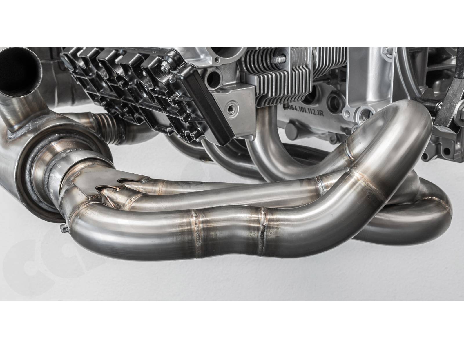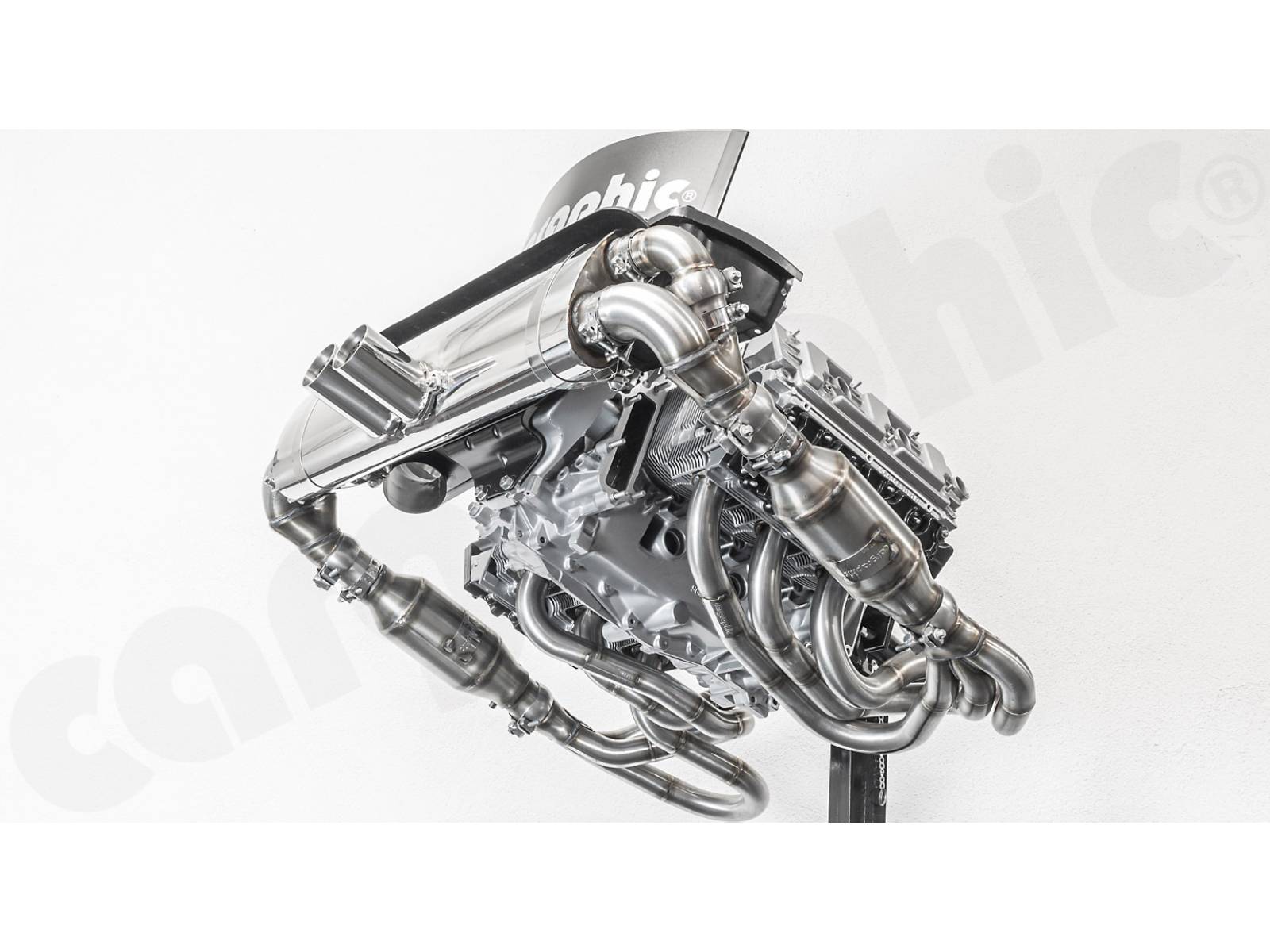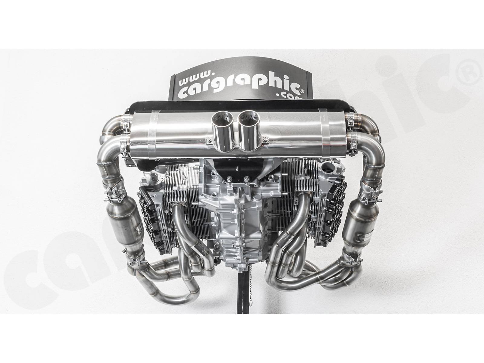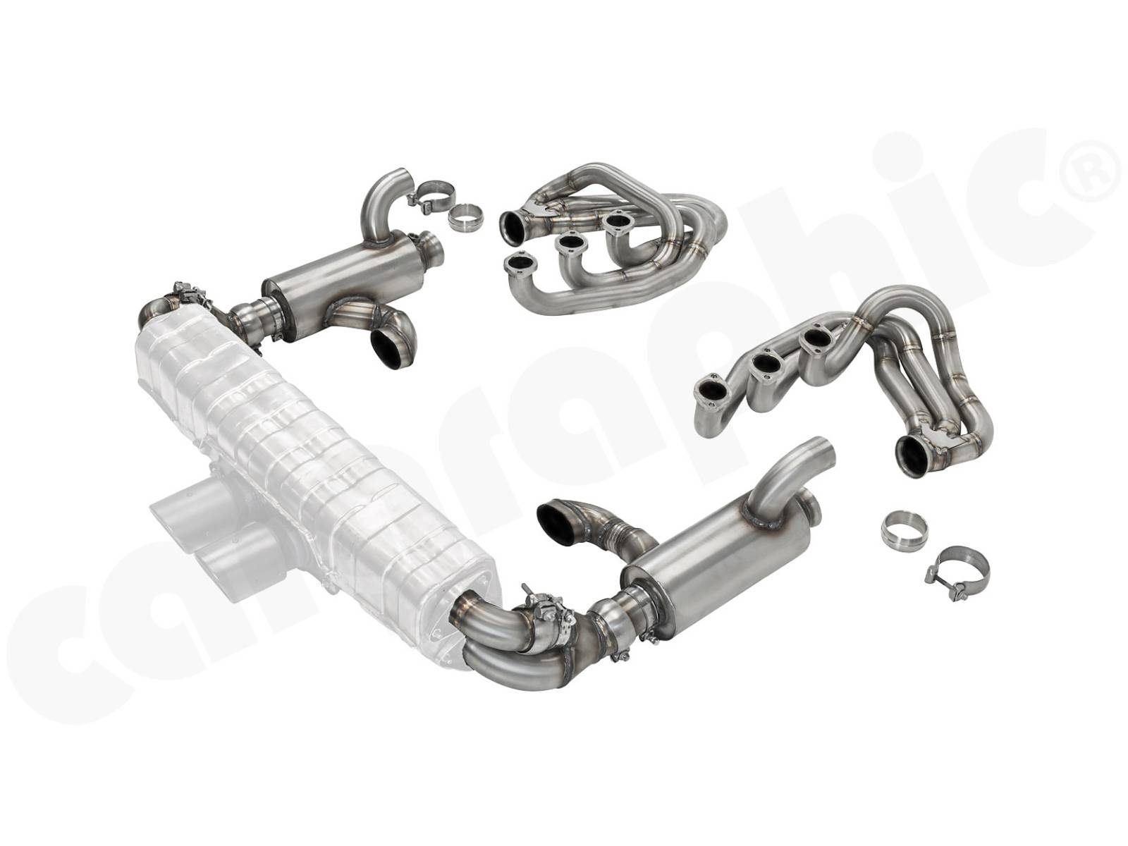 Sistema di scarico sportivo CARGRAPHIC GT Backdate con set collettore ID45 GT, con/senza convertitori catalitici 2x200cpsi, con riscaldamento e valvole di scarico - da utilizzare con silenziatore posteriore OEM GT3.