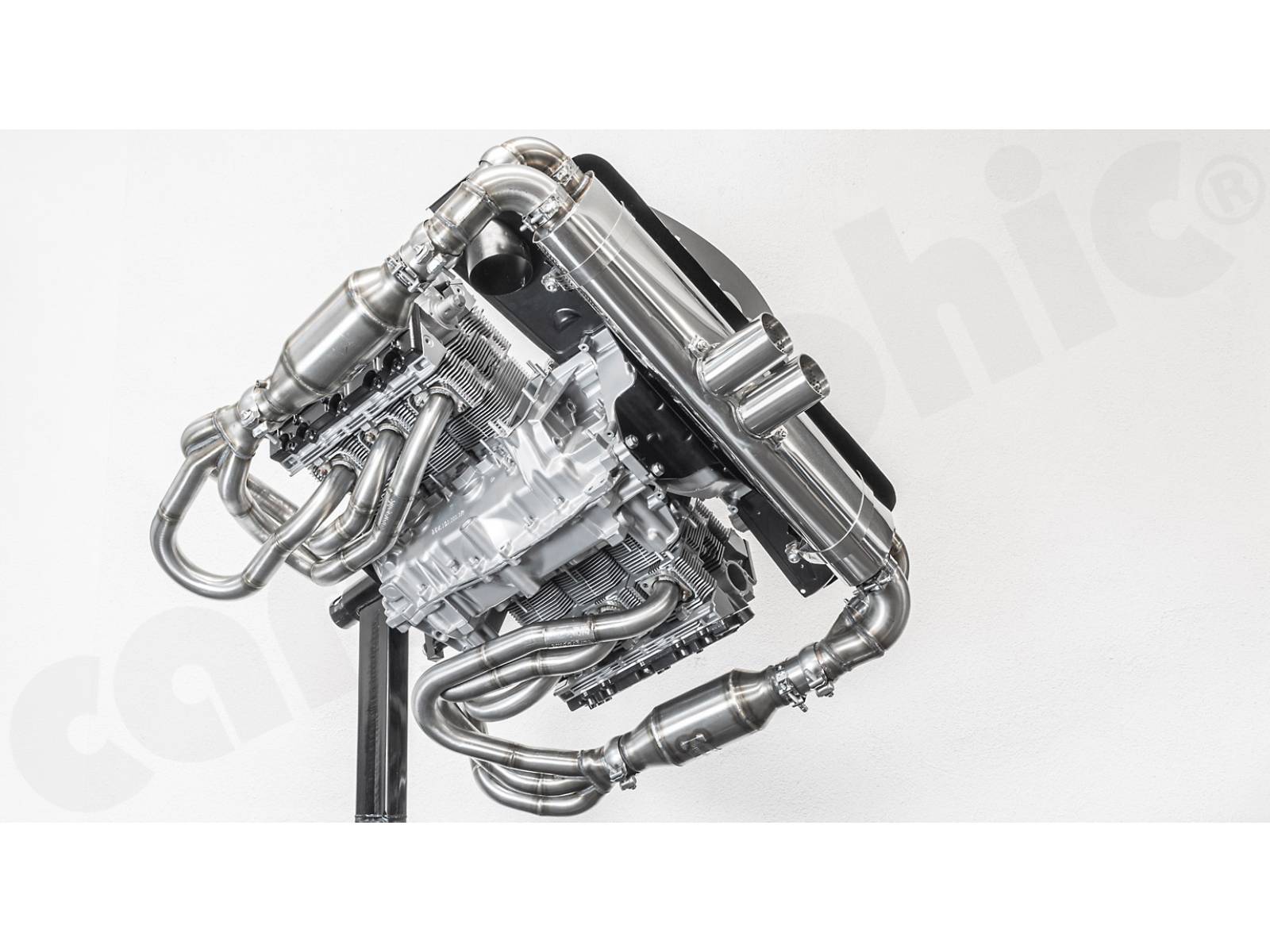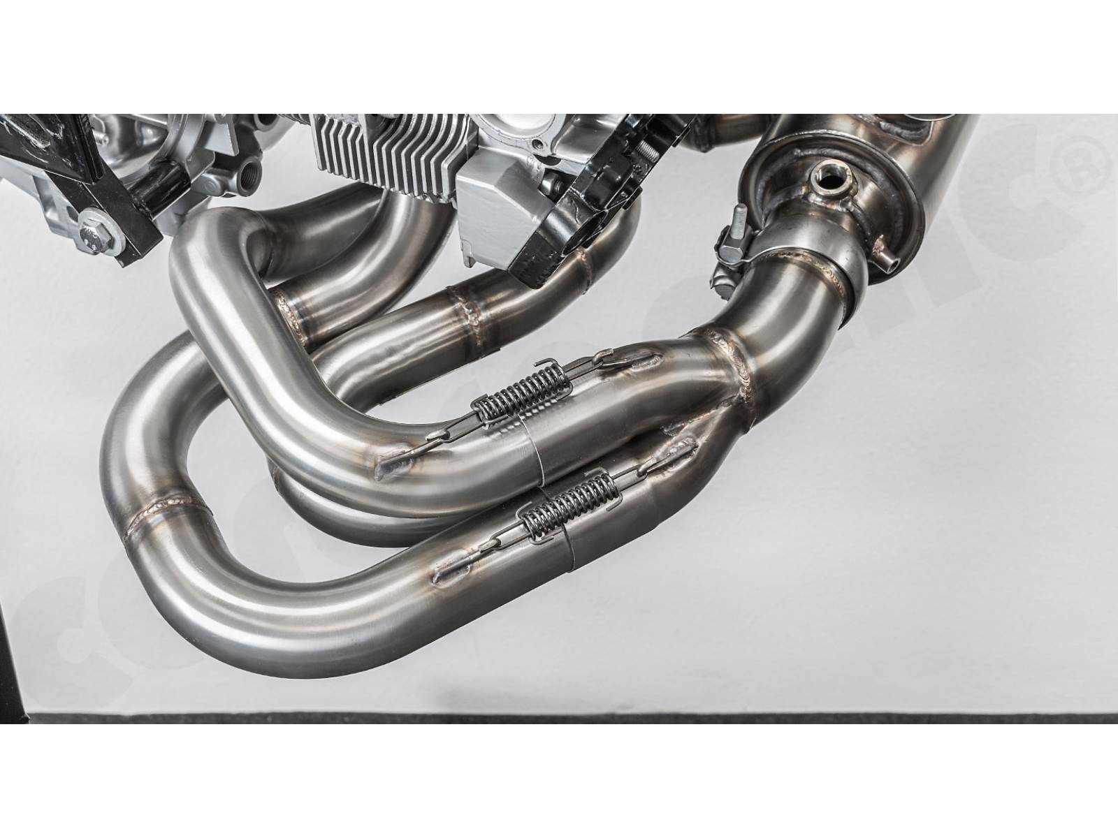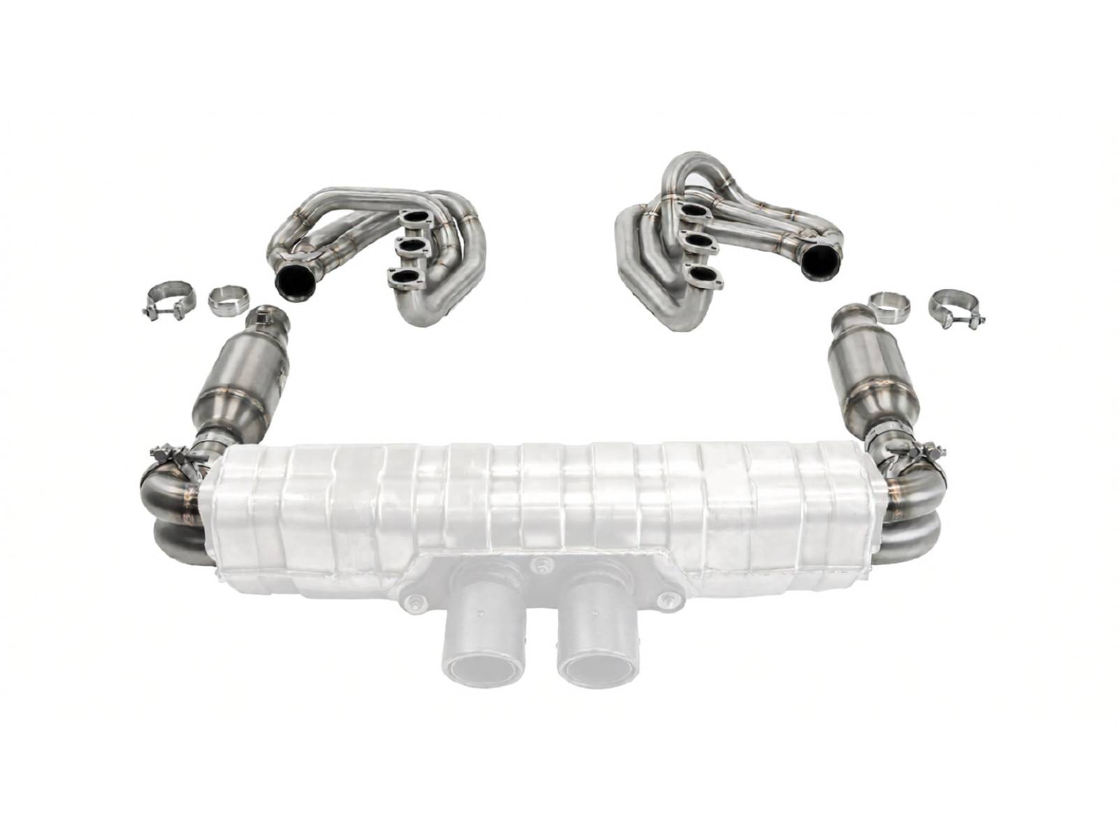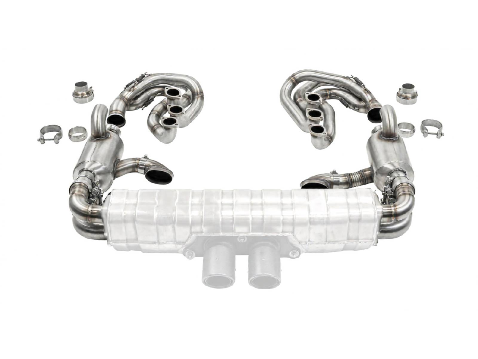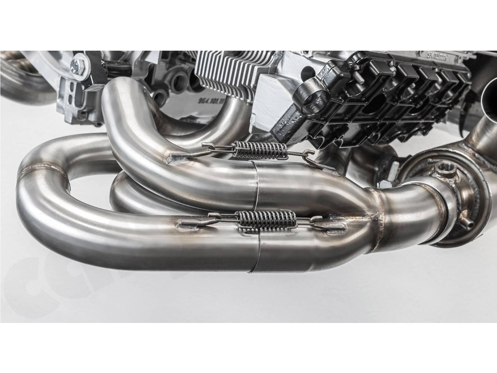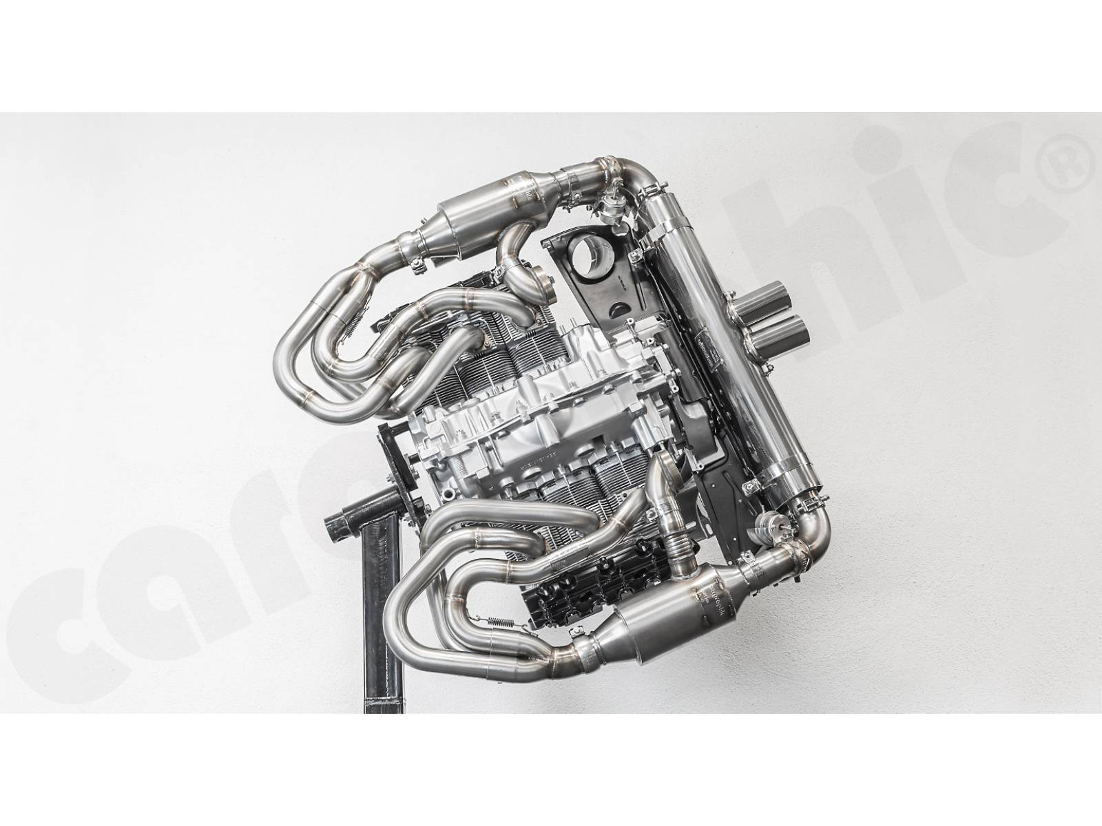 Sistema di scarico sportivo CARGRAPHIC GT Backdate con set collettore ID45 GT, con/senza convertitori catalitici 2x200cpsi, con riscaldamento e valvole di scarico - da utilizzare con silenziatore posteriore OEM GT3.