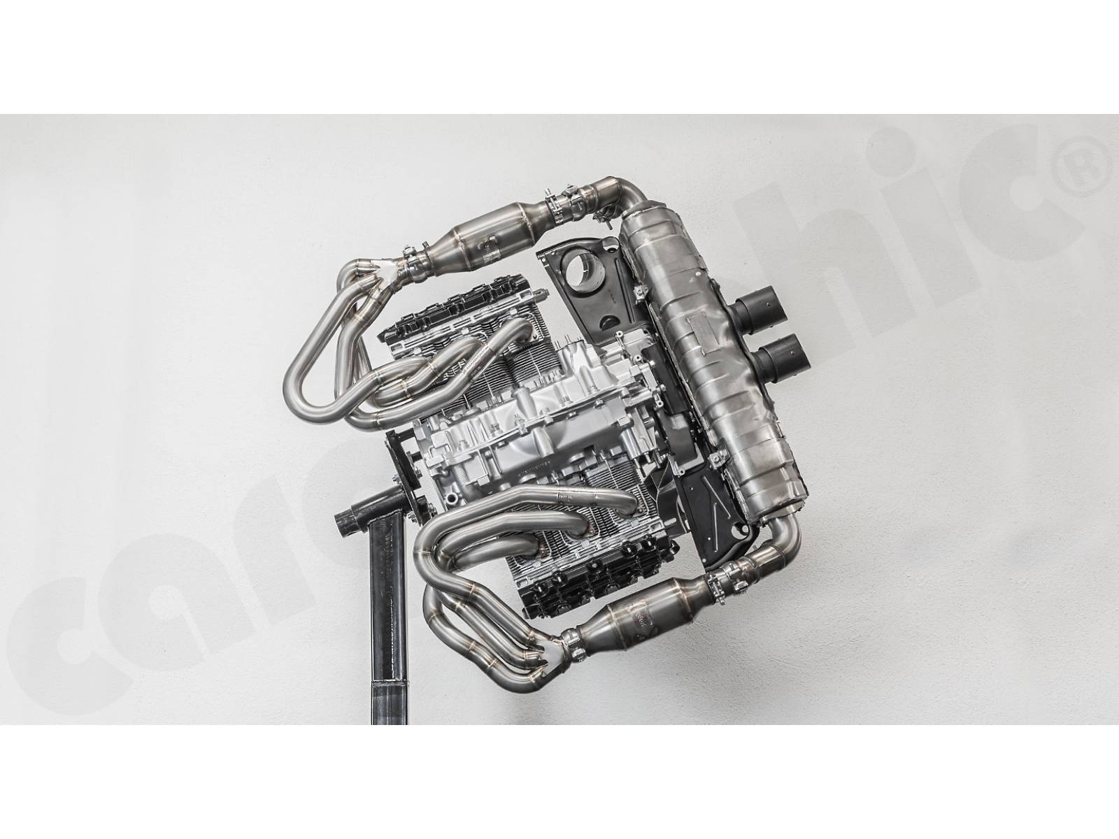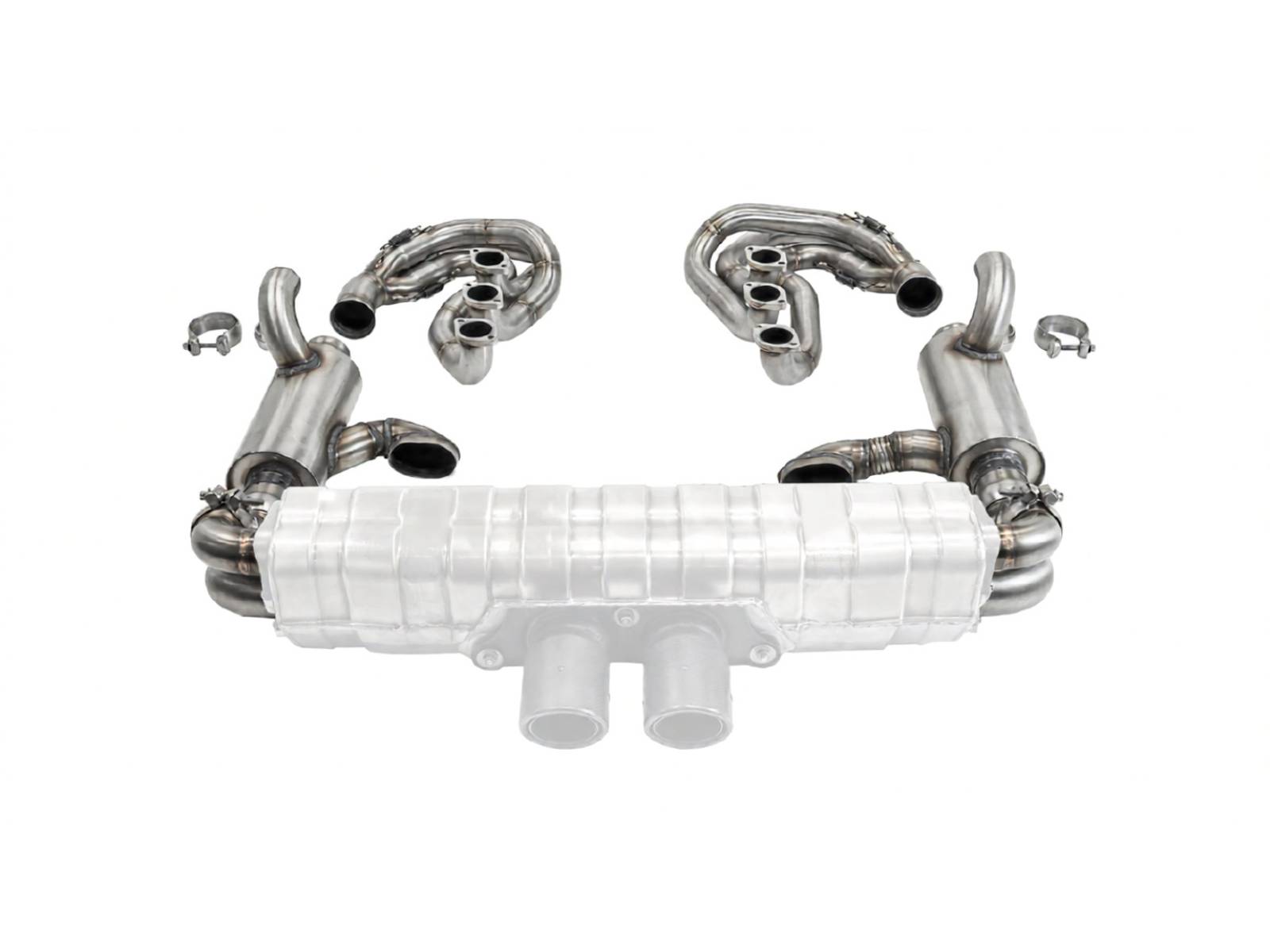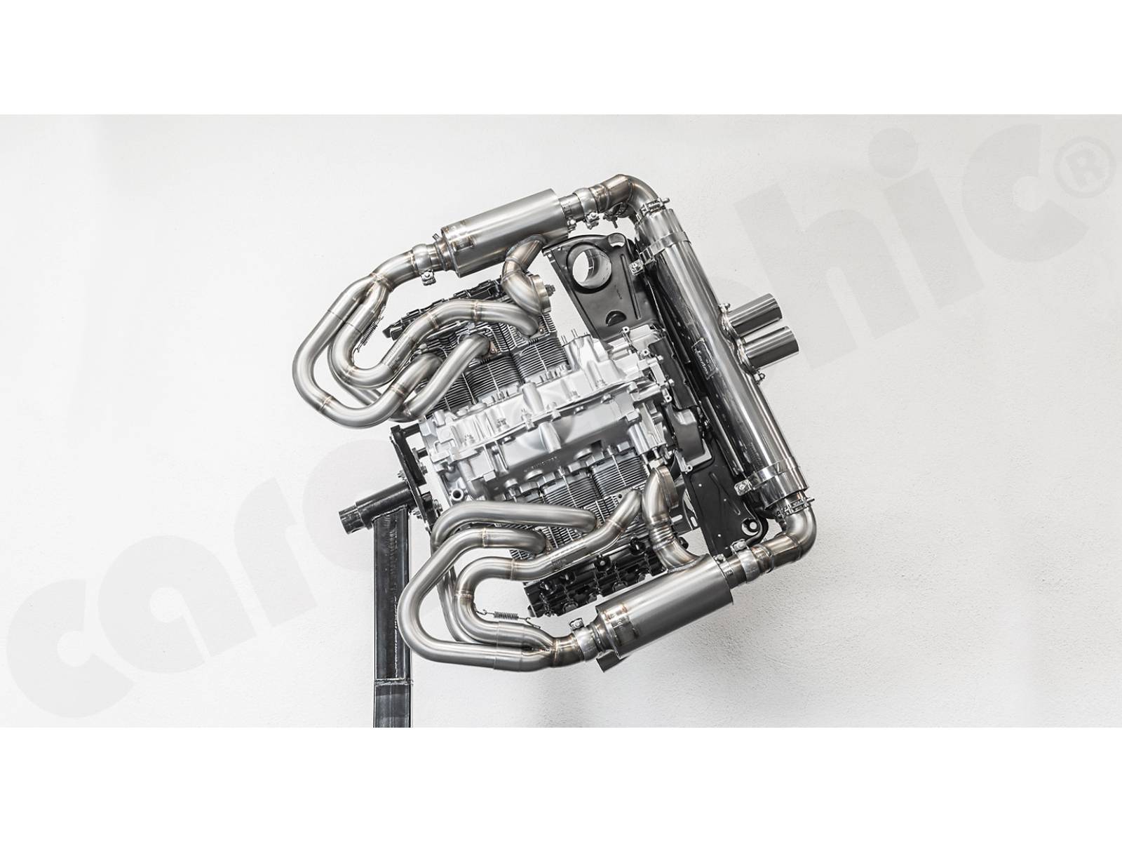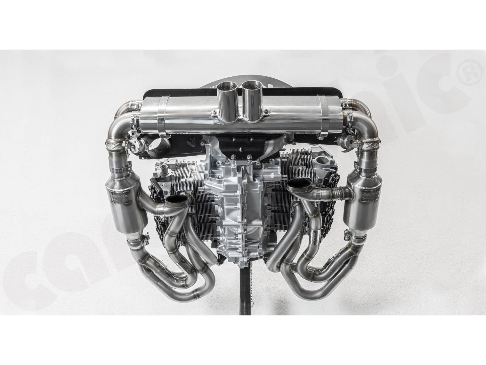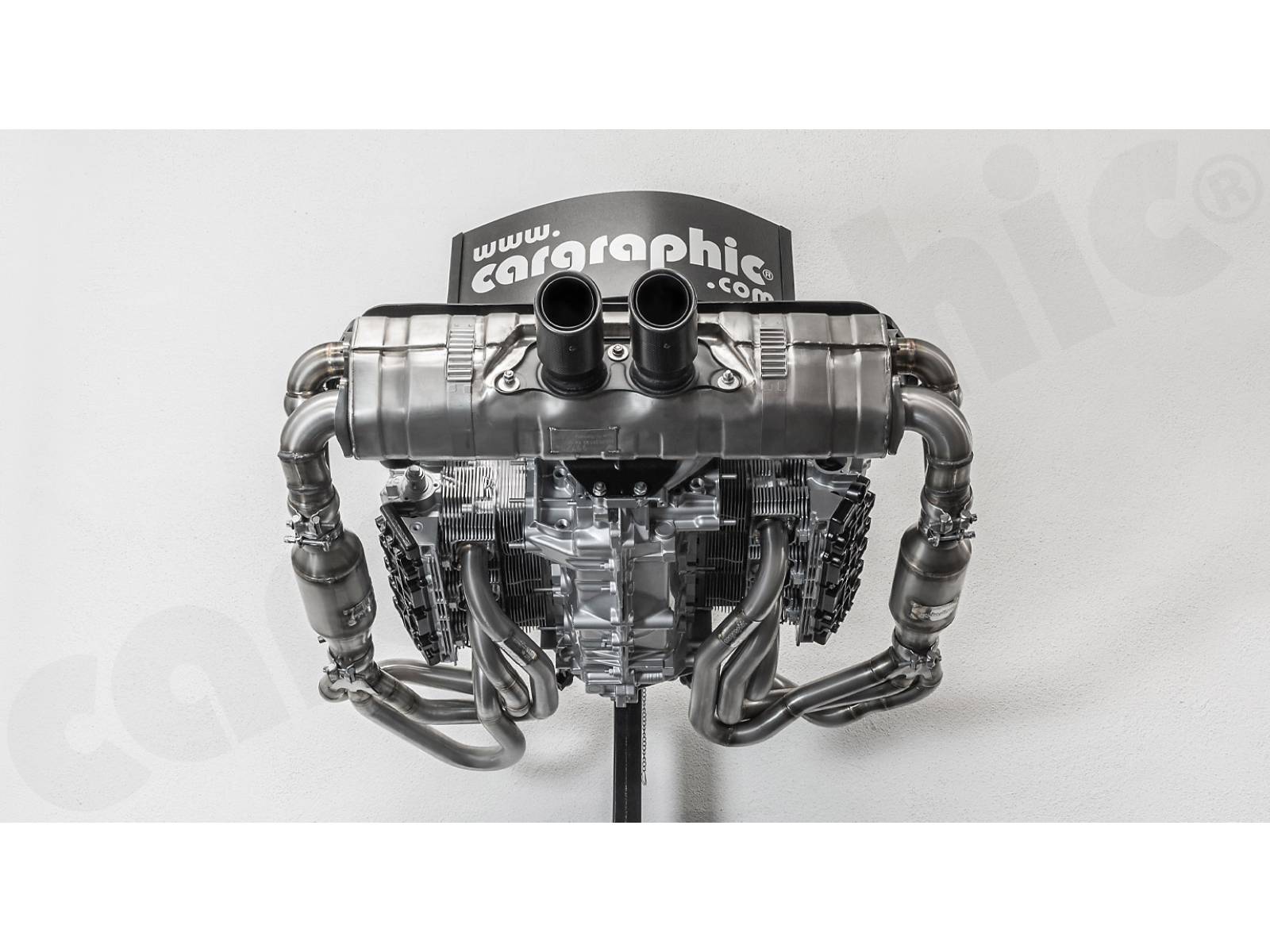 Sistema di scarico sportivo CARGRAPHIC GT Backdate con set collettore ID45 GT, con/senza convertitori catalitici 2x200cpsi, con riscaldamento e valvole di scarico - da utilizzare con silenziatore posteriore OEM GT3.