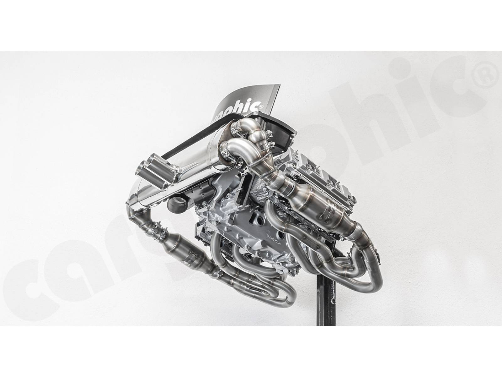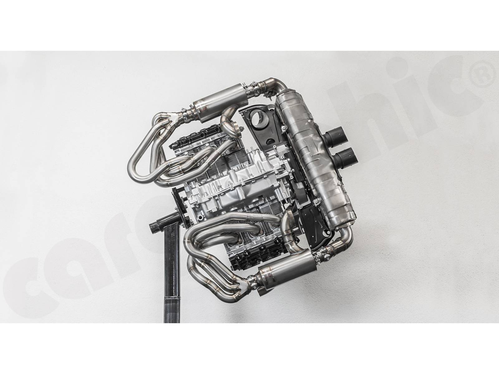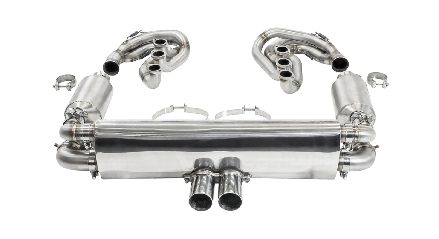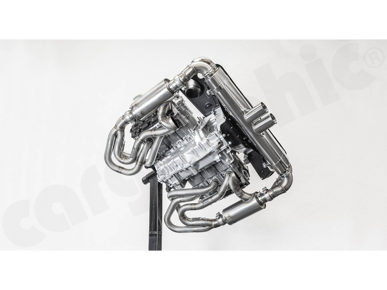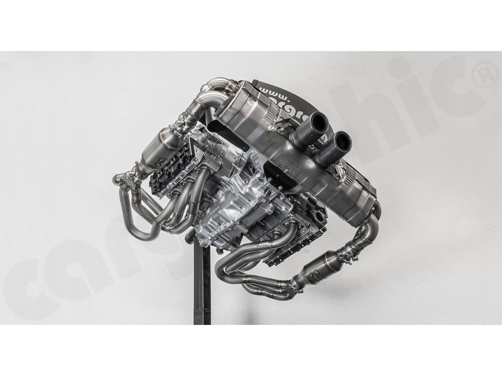 Sistema di scarico sportivo CARGRAPHIC GT Backdate con set collettore ID45 GT, con/senza convertitori catalitici 2x200cpsi, con riscaldamento e valvole di scarico - da utilizzare con silenziatore posteriore OEM GT3.