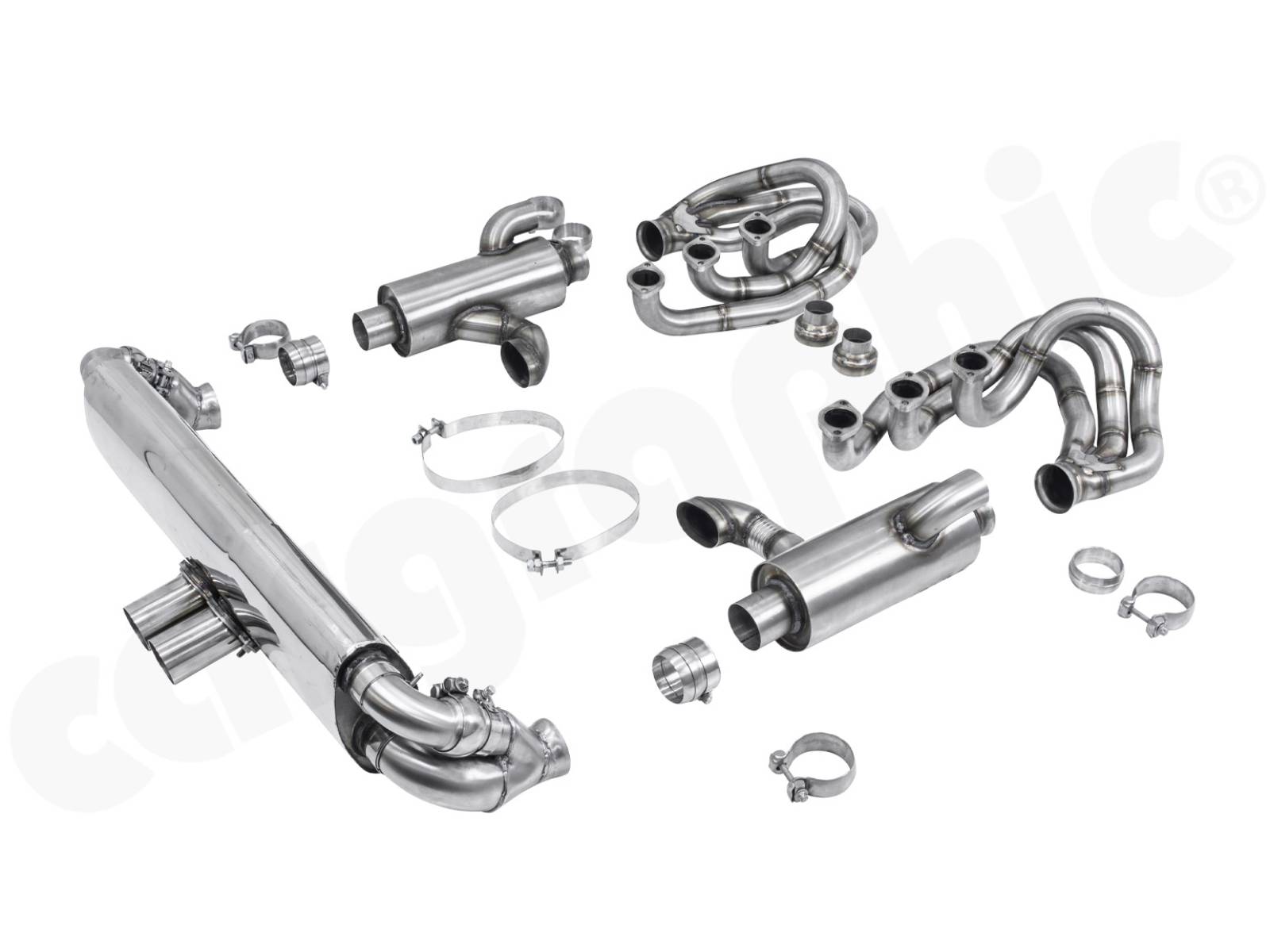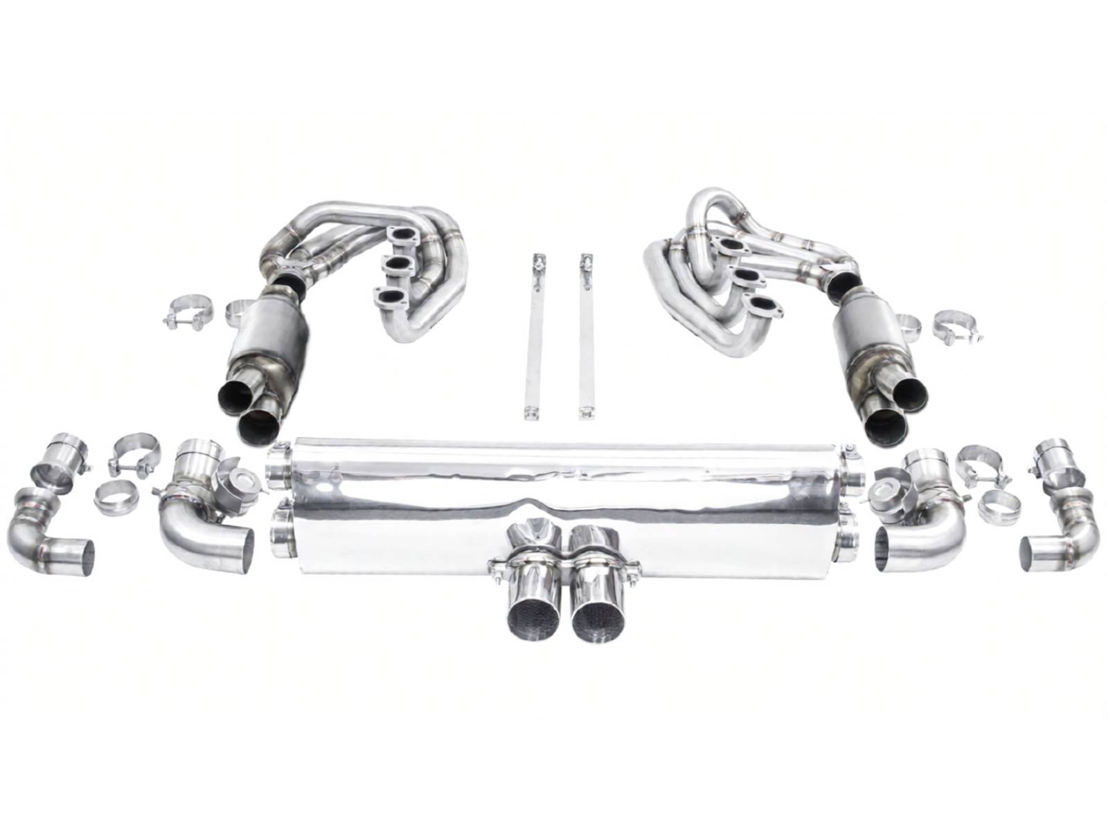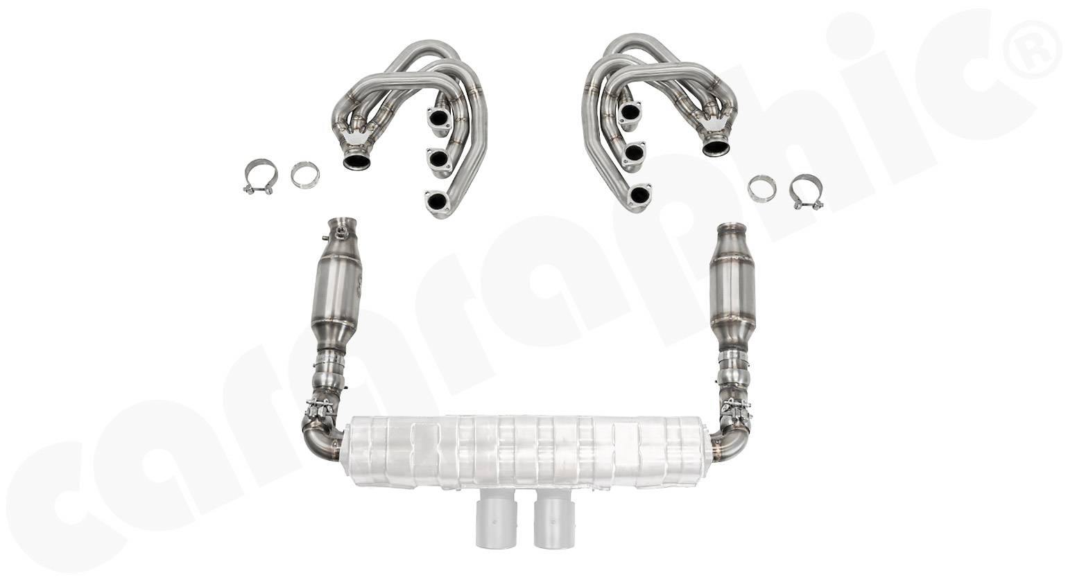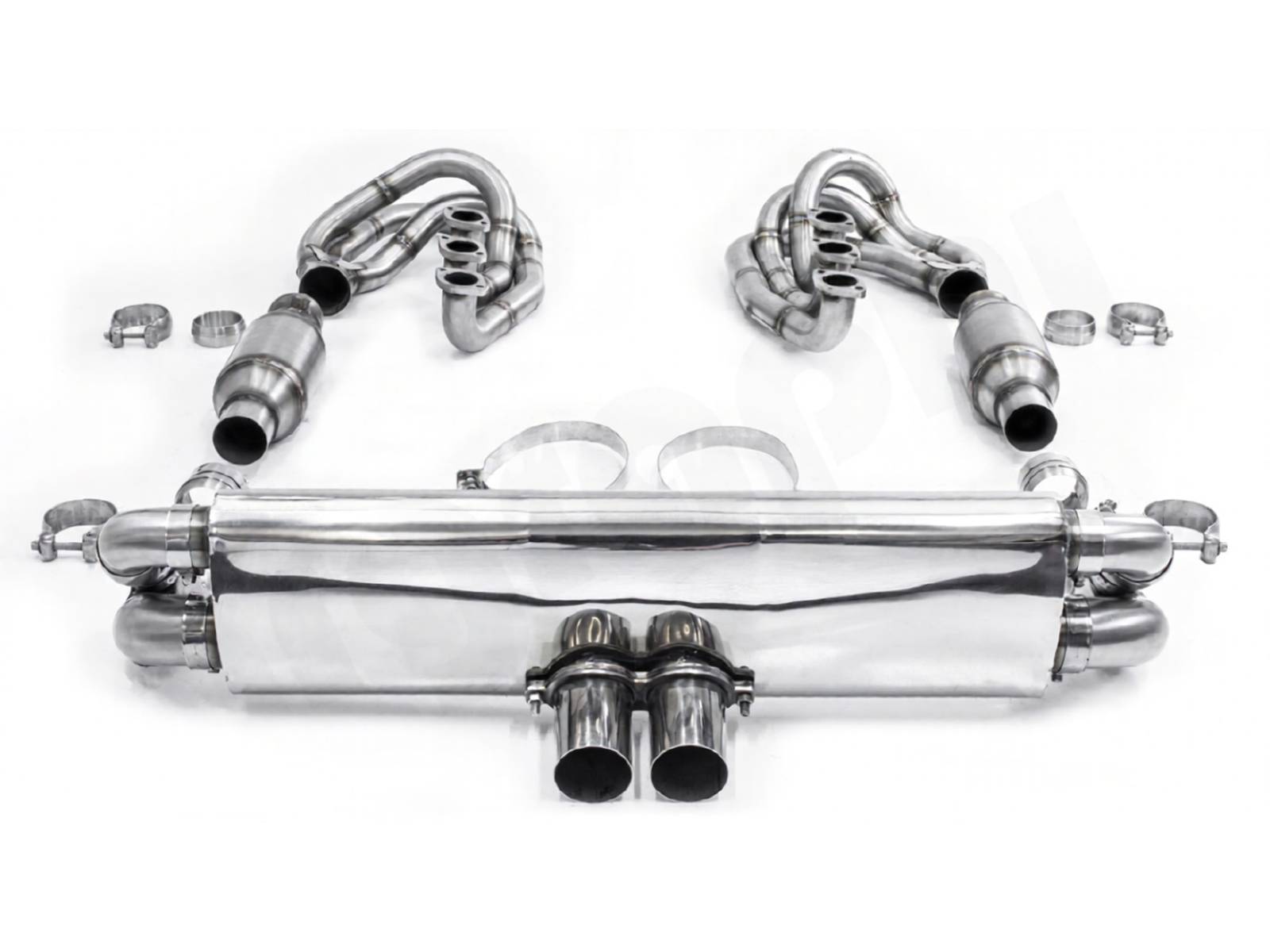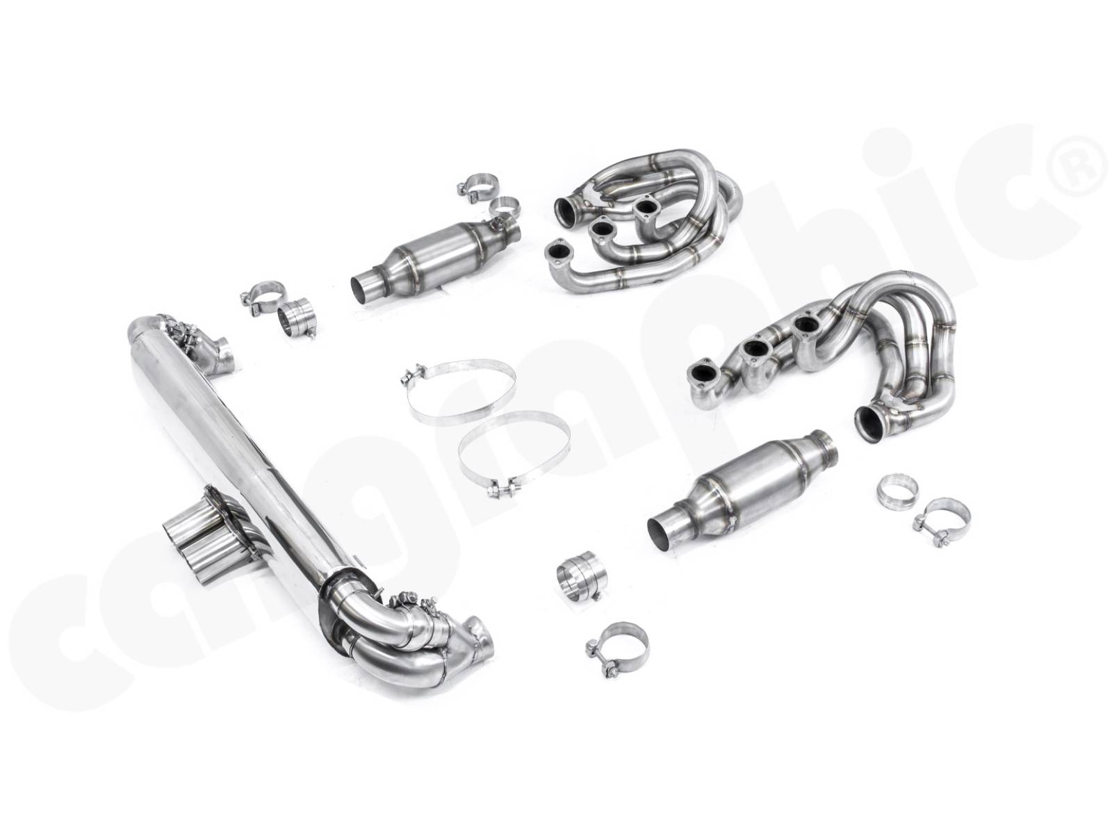 Sistema di scarico sportivo CARGRAPHIC GT Backdate con set collettore ID42 GT, con/senza catalizzatori 2x200cpsi, senza riscaldamento con valvole di scarico - da utilizzare con silenziatore posteriore OEM GT3.