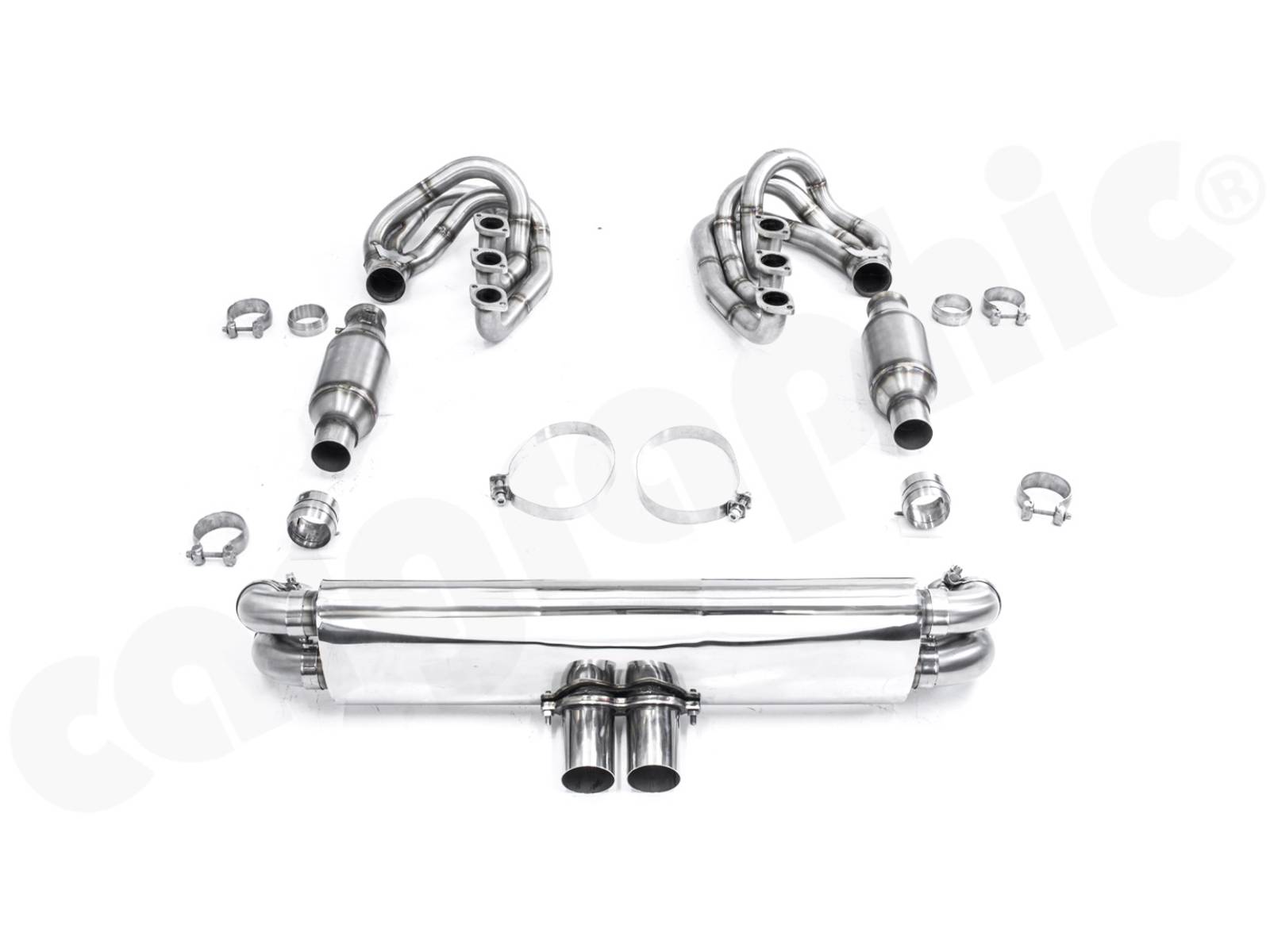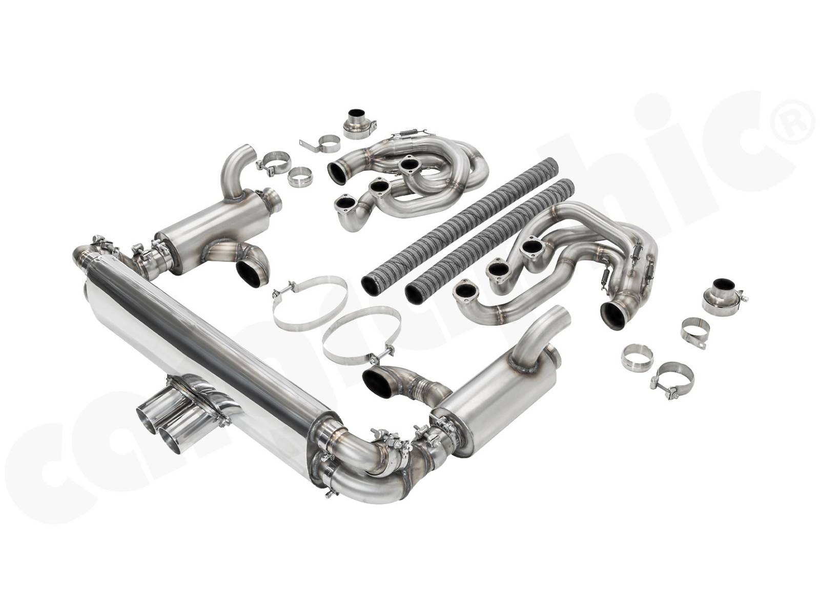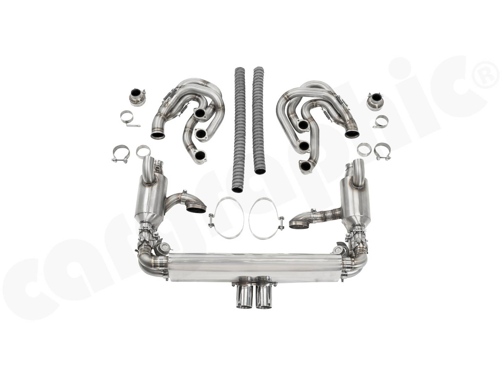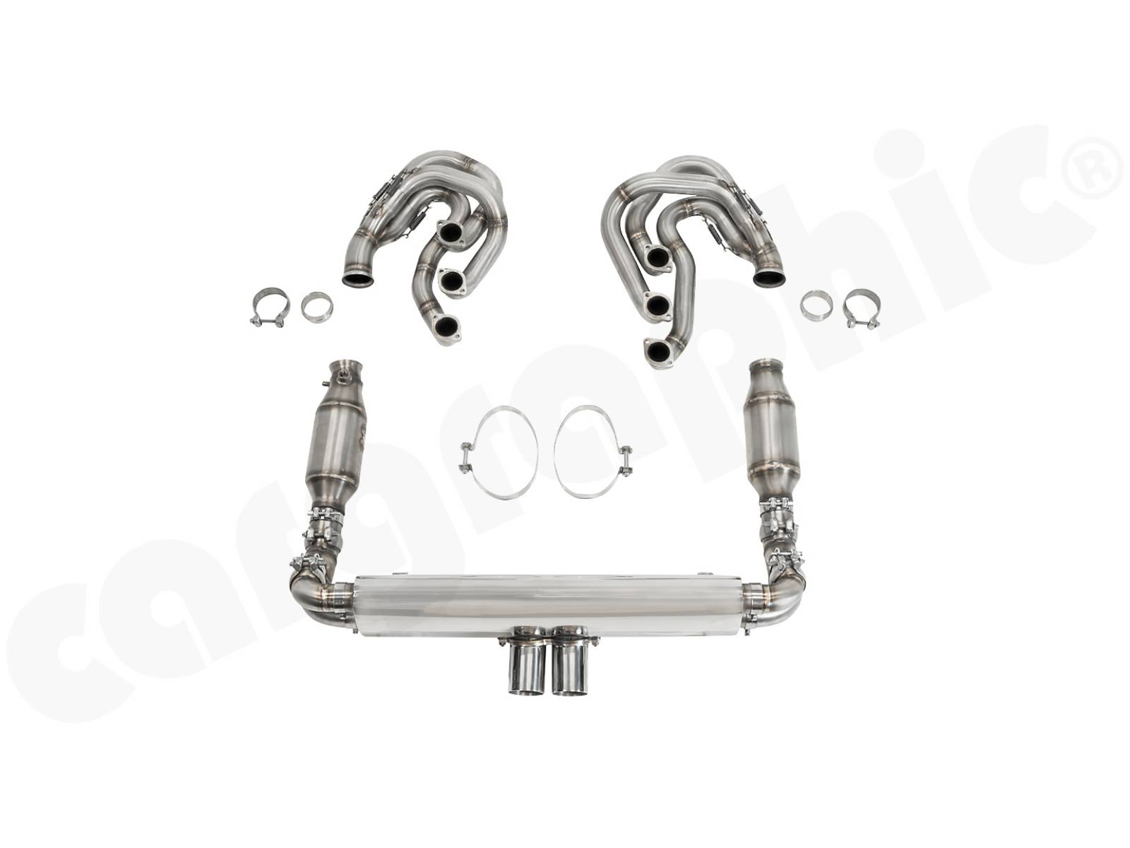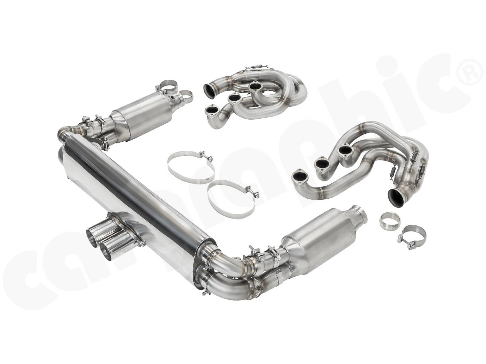 Sistema di scarico sportivo CARGRAPHIC GT Backdate con set collettore ID42 GT, con/senza catalizzatori 2x200cpsi, con riscaldamento e valvole di scarico - da utilizzare con silenziatore posteriore OEM GT3.