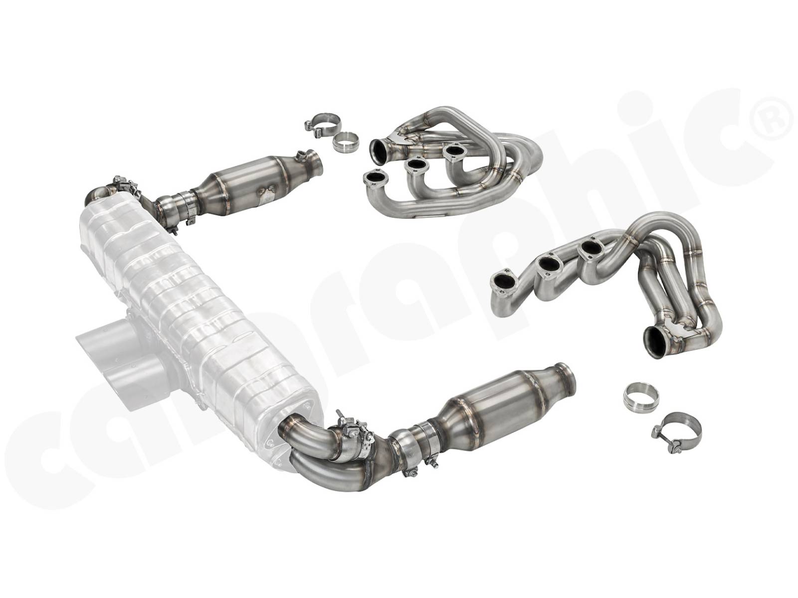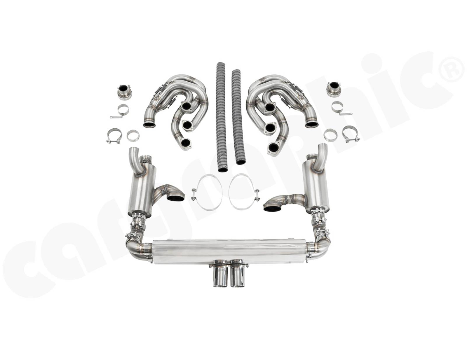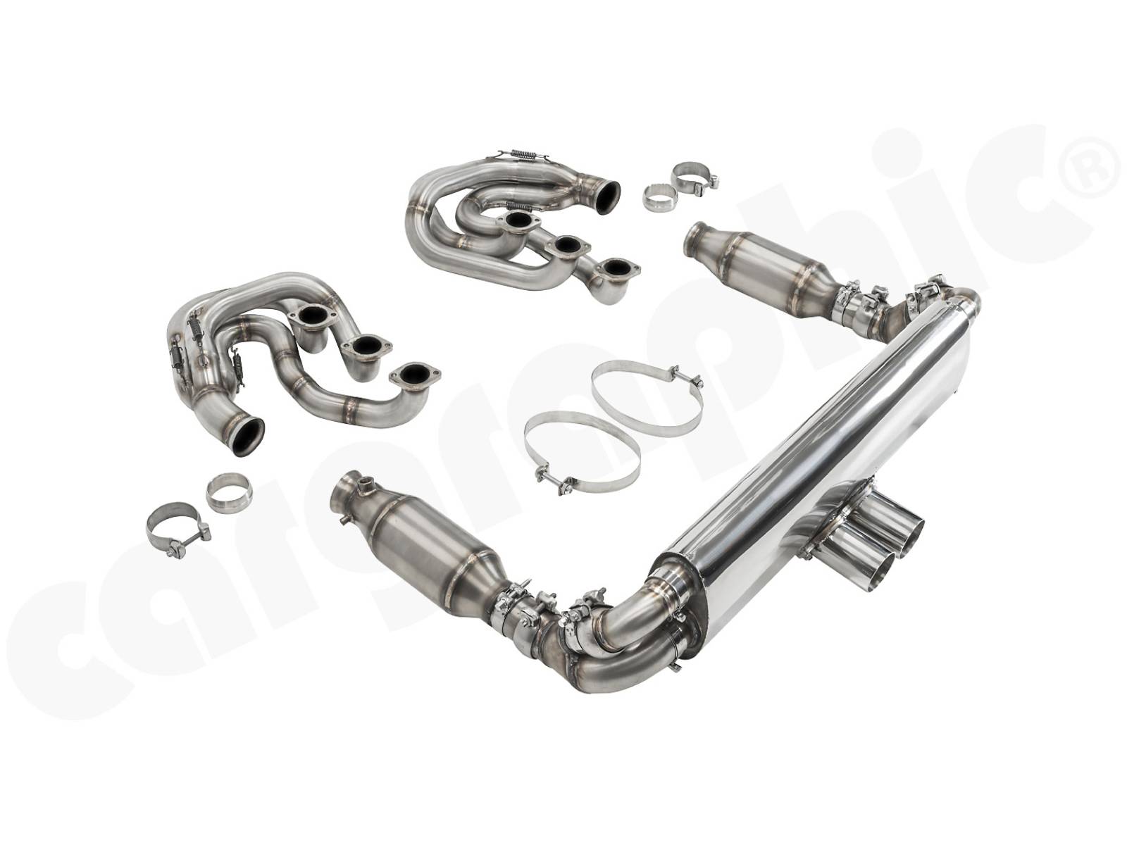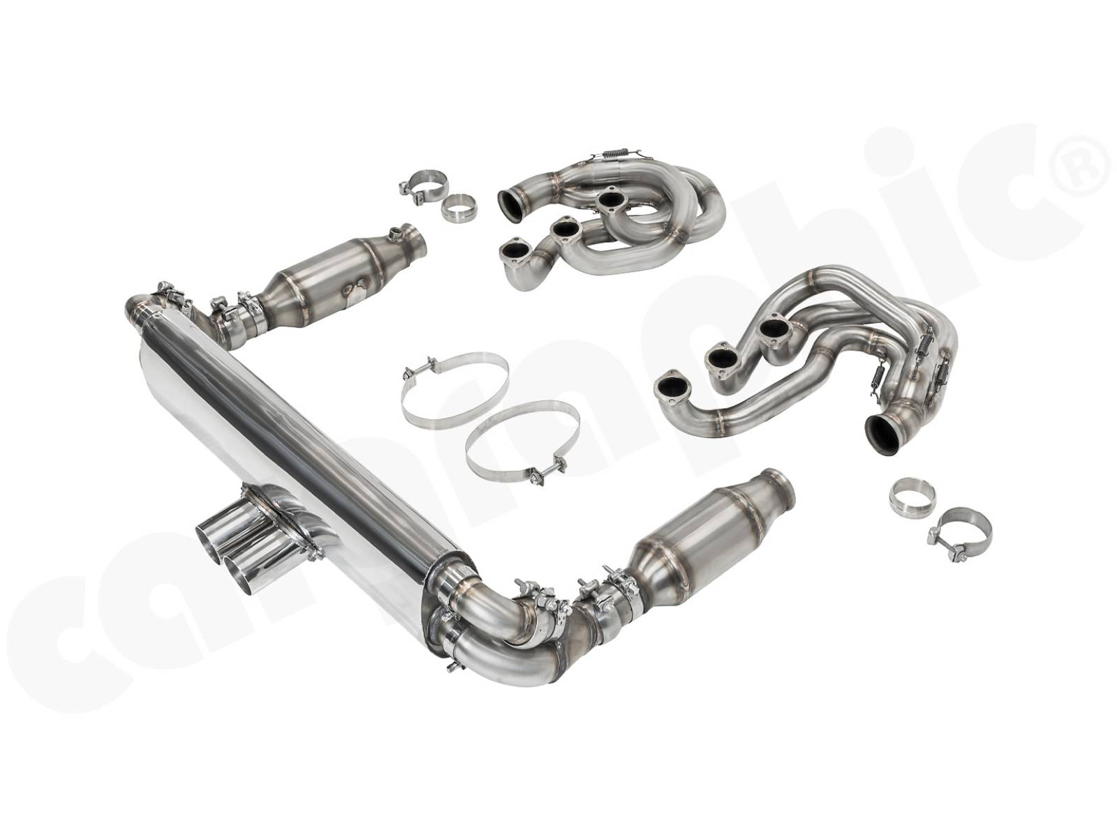 Sistema di scarico sportivo CARGRAPHIC GT Backdate con set collettore ID42 GT, con/senza catalizzatori 2x200cpsi, con riscaldamento e valvole di scarico - da utilizzare con silenziatore posteriore OEM GT3.