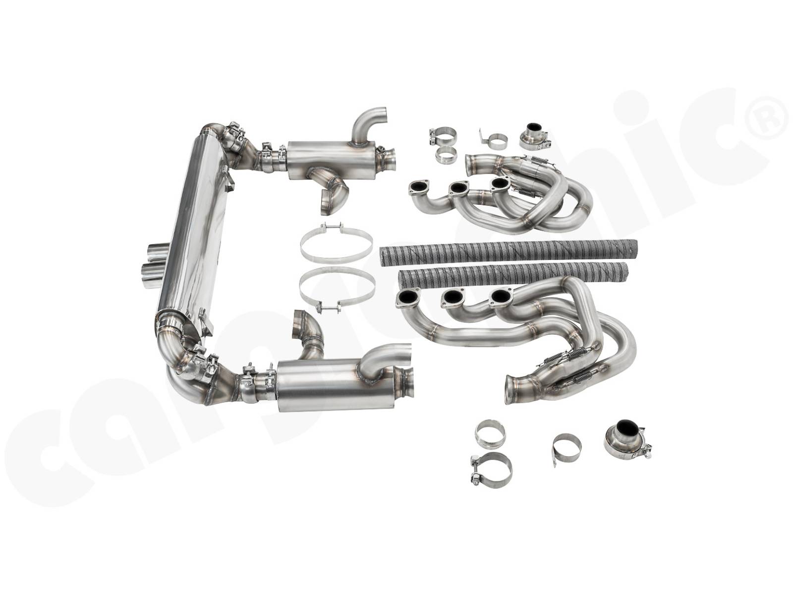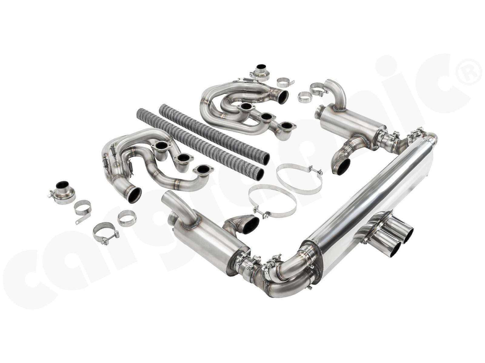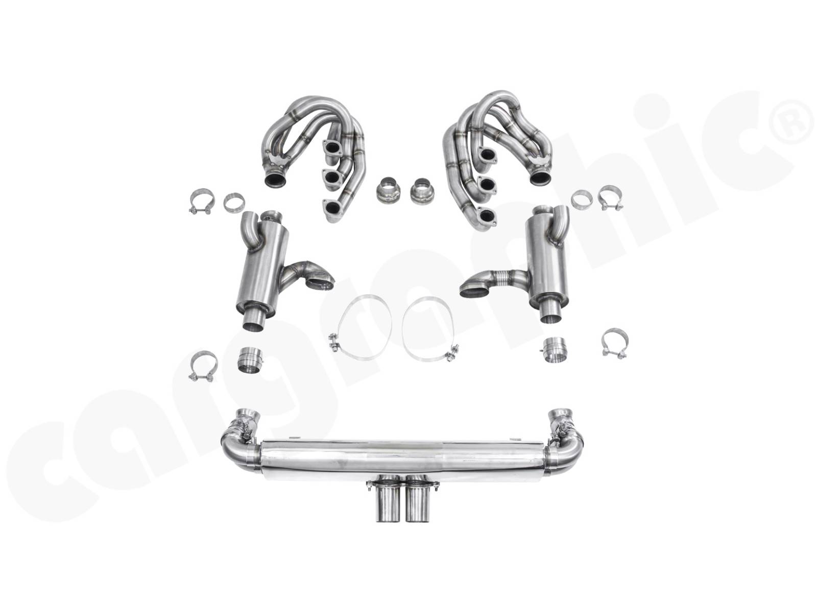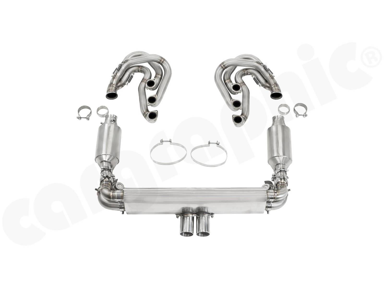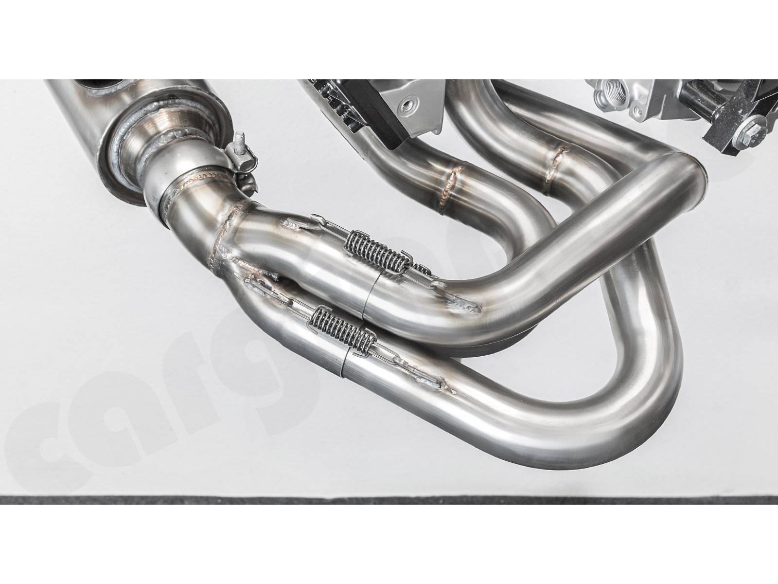 Sistema di scarico sportivo CARGRAPHIC GT Backdate con set collettore ID42 GT, con/senza catalizzatori 2x200cpsi, con riscaldamento e valvole di scarico - da utilizzare con silenziatore posteriore OEM GT3.