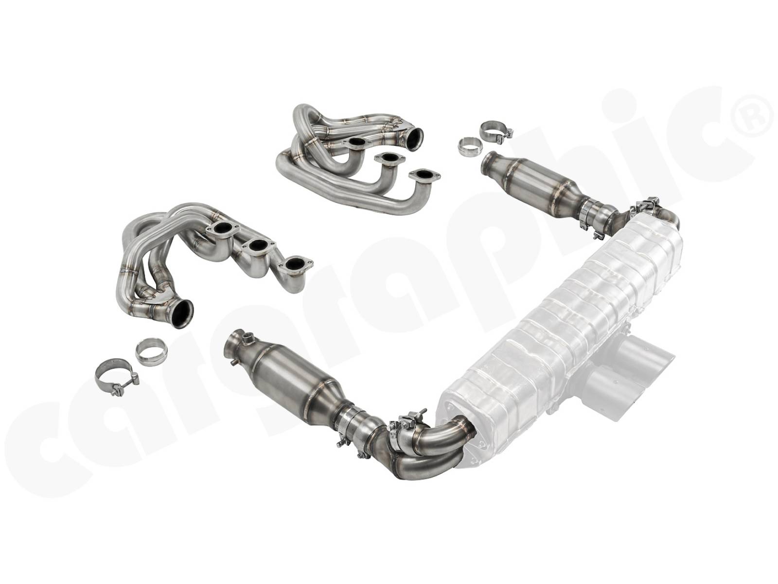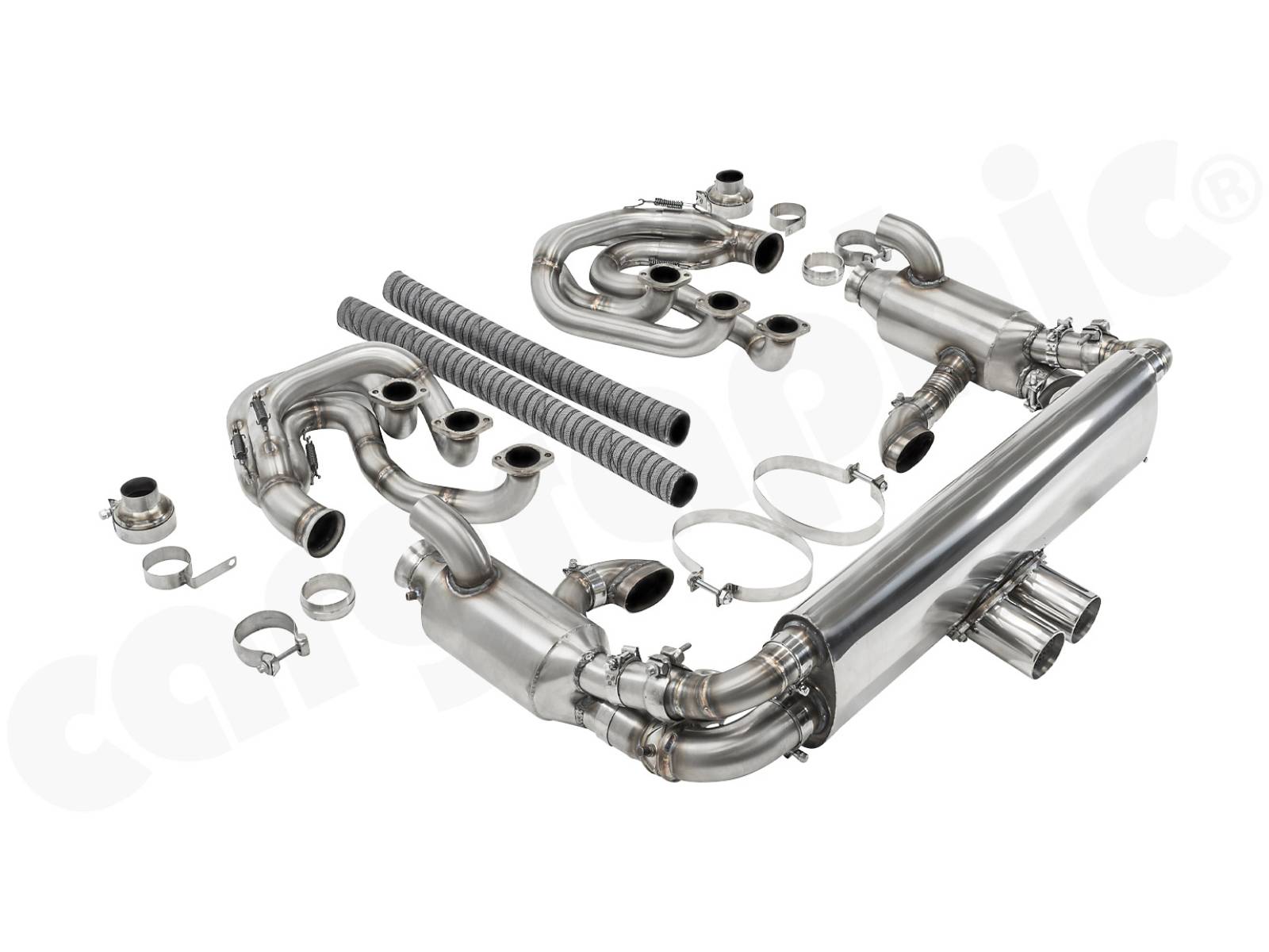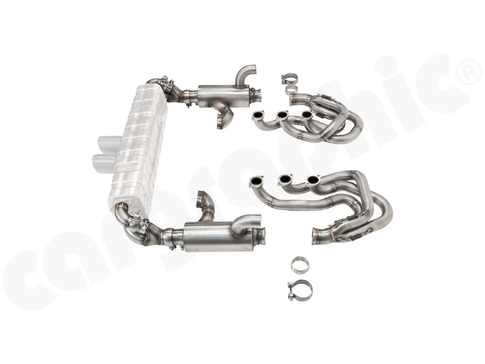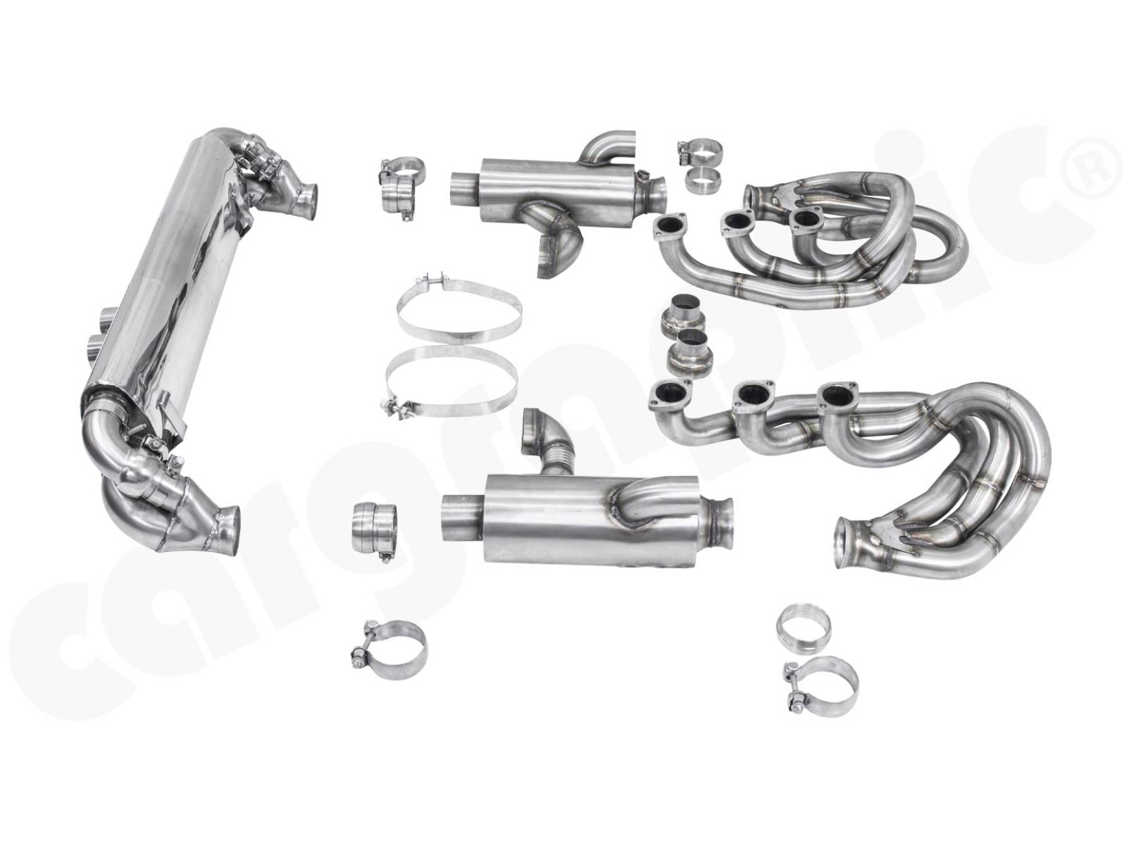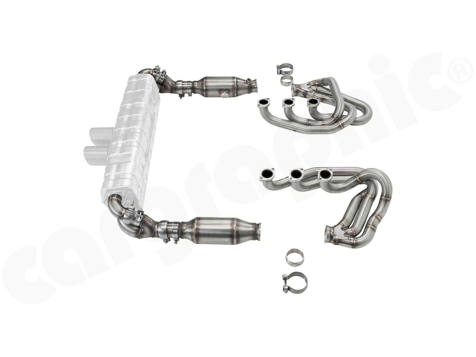 Sistema di scarico sportivo CARGRAPHIC GT Backdate con set collettore ID42 GT, con/senza catalizzatori 2x200cpsi, con riscaldamento e valvole di scarico - da utilizzare con silenziatore posteriore OEM GT3.