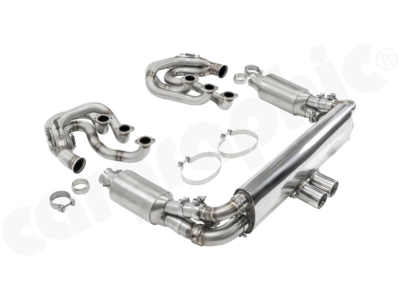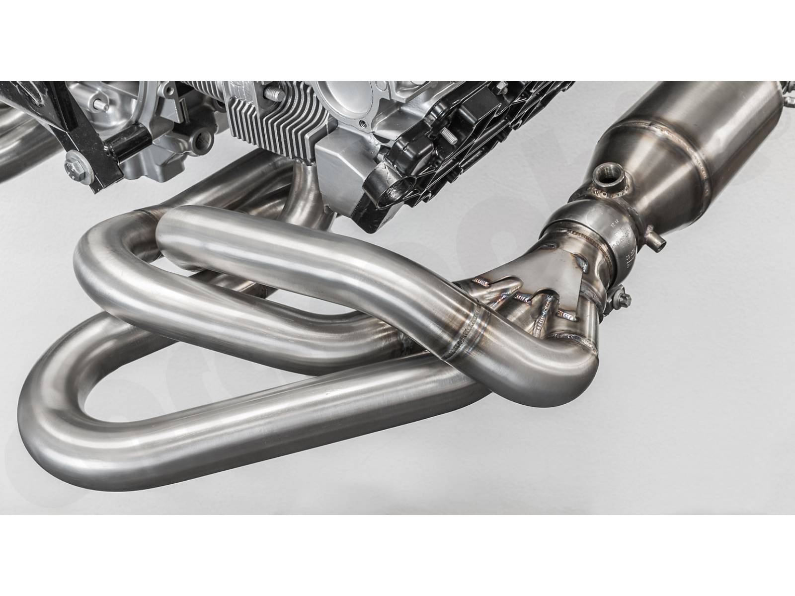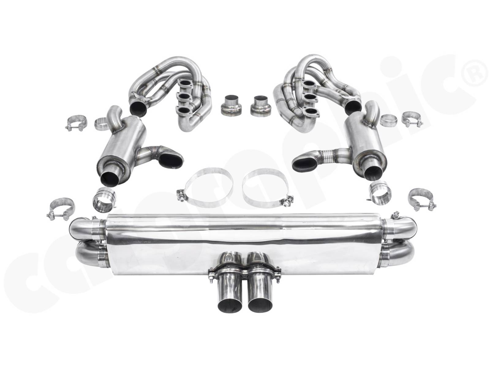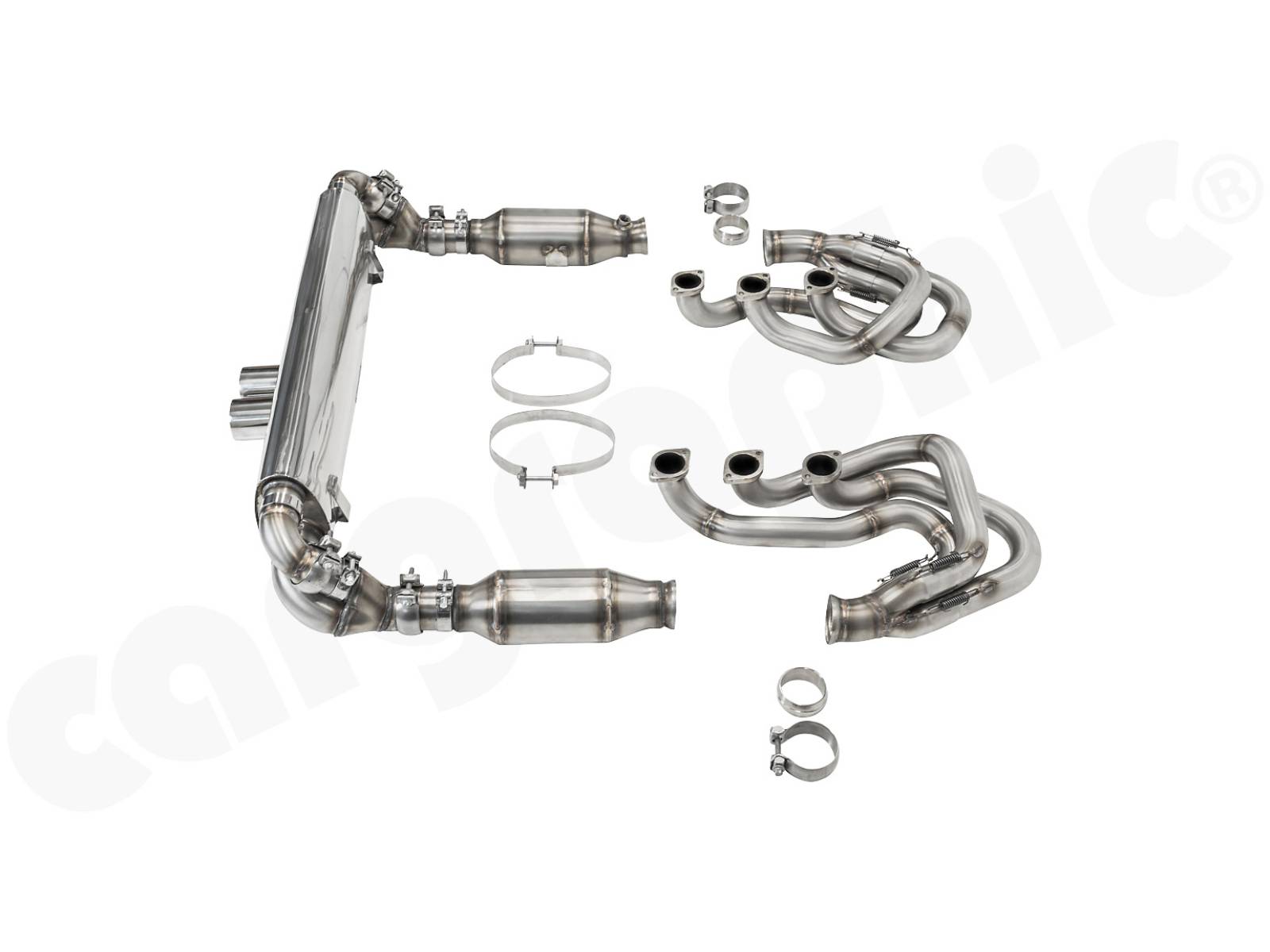 Sistema di scarico sportivo CARGRAPHIC GT Backdate con set collettore ID42 GT, con/senza catalizzatori 2x200cpsi, con riscaldamento e valvole di scarico - da utilizzare con silenziatore posteriore OEM GT3.