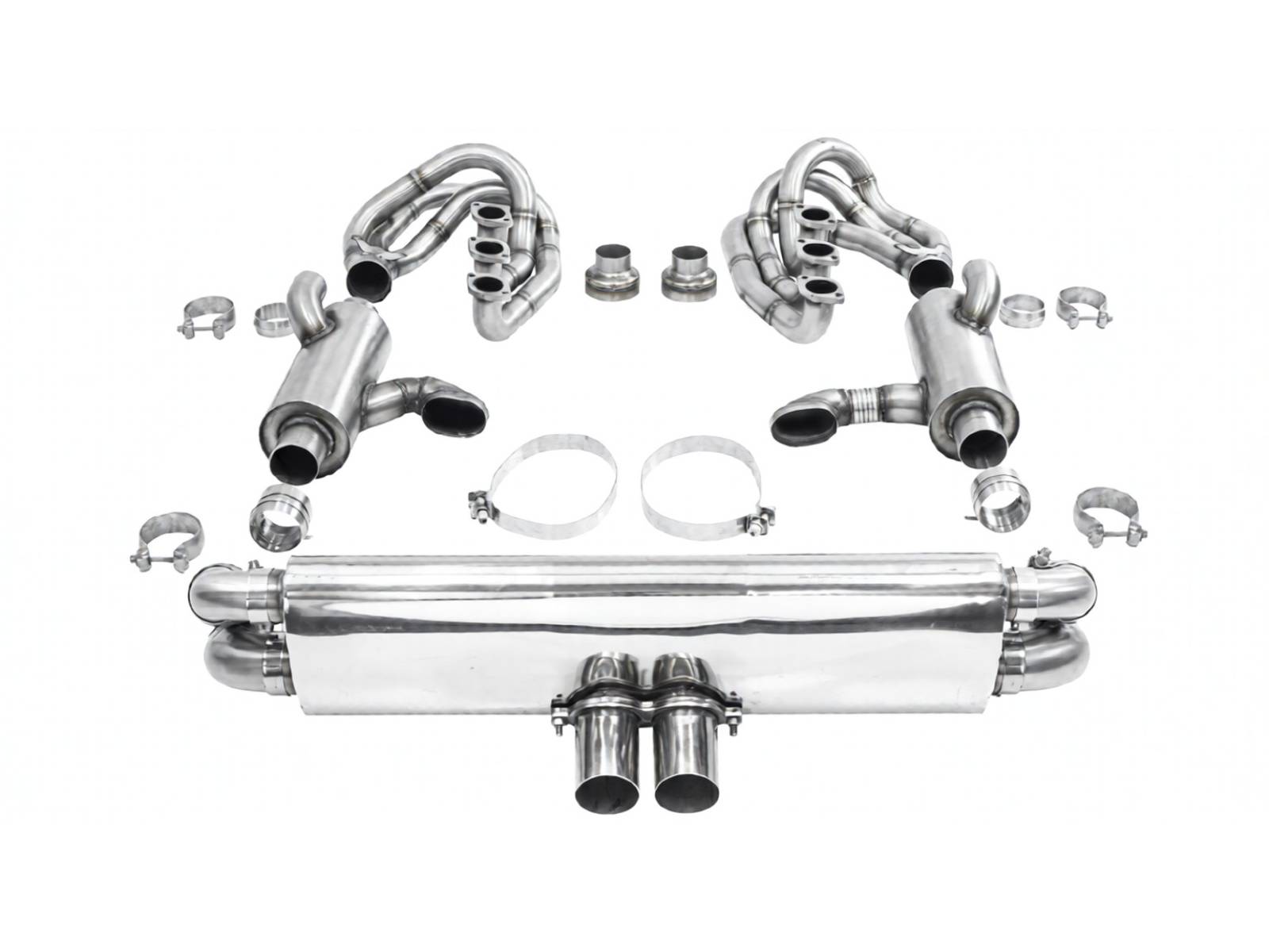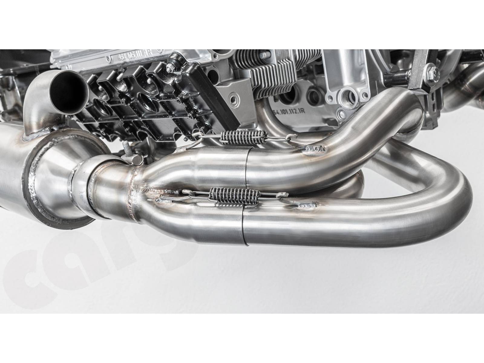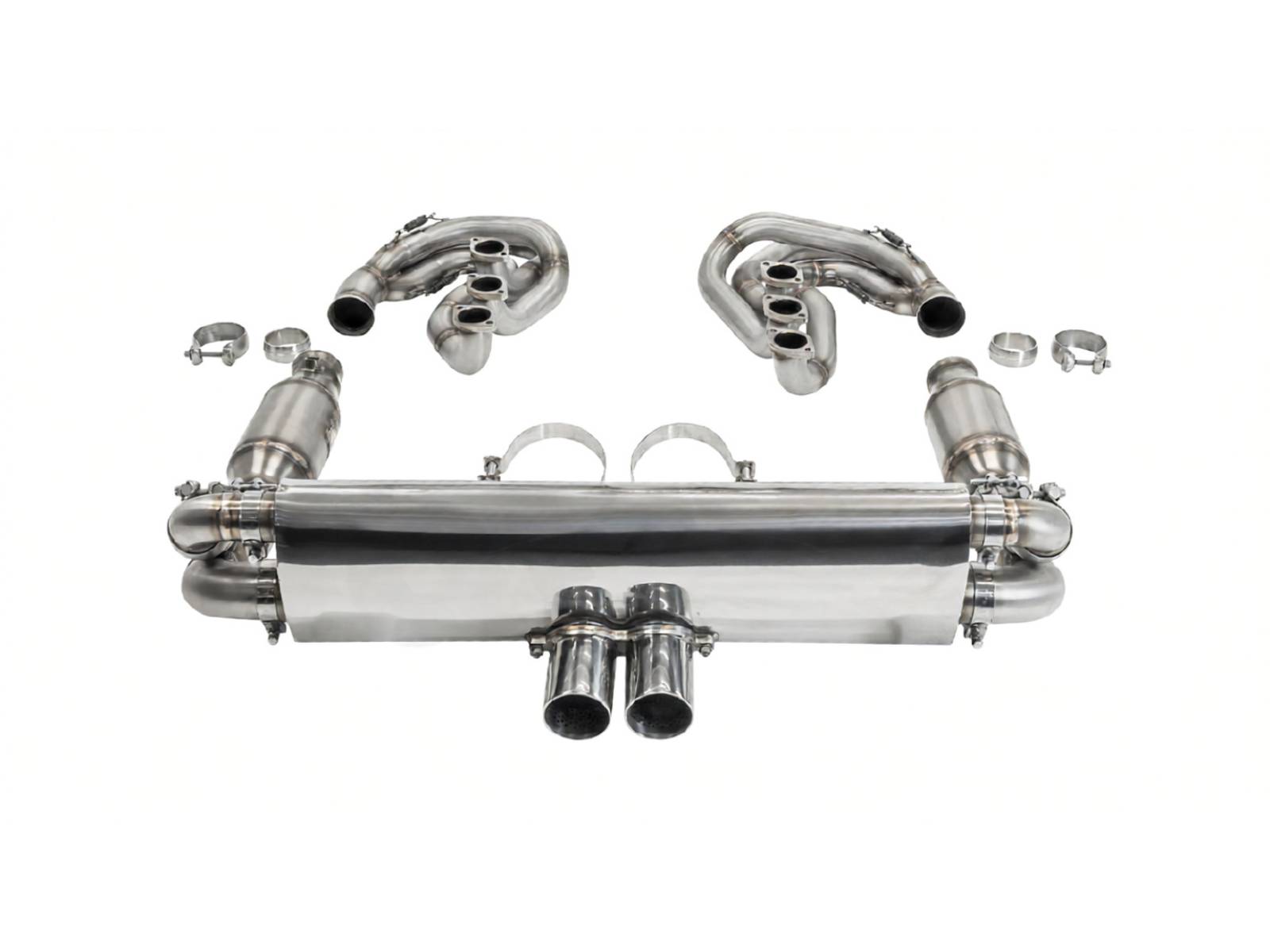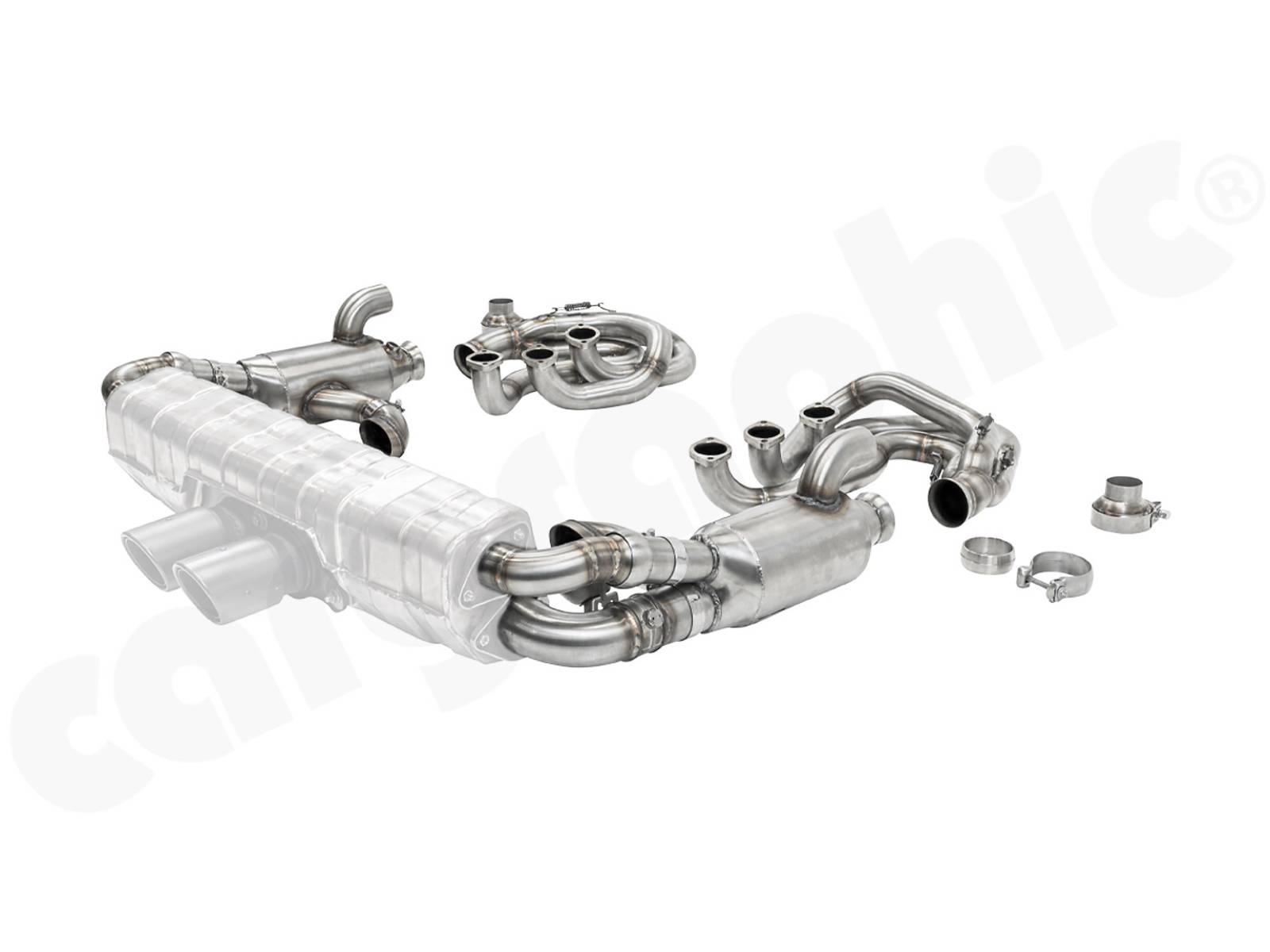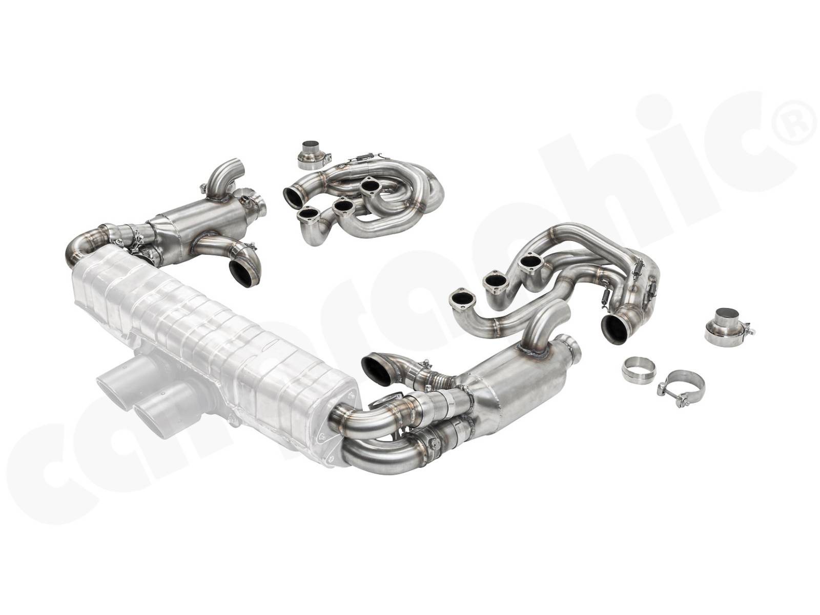 Sistema di scarico sportivo CARGRAPHIC GT Backdate con set collettore ID42 GT, con/senza catalizzatori 2x200cpsi, con riscaldamento e valvole di scarico - da utilizzare con silenziatore posteriore OEM GT3.