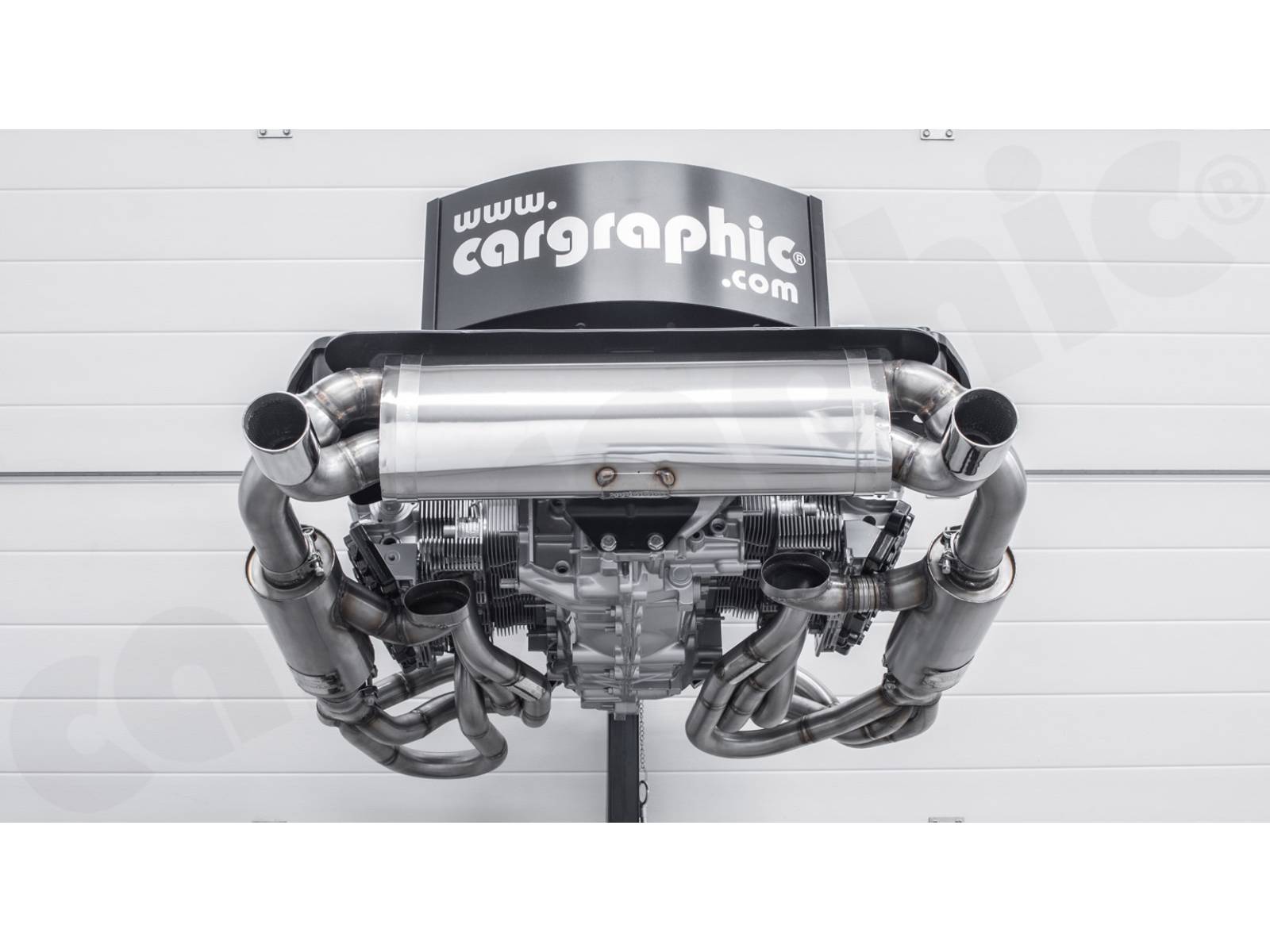 • Sostituzione del silenziatore centrale CARGRAPHIC, costruzione a X in 2 pezzi, aperto con flusso di gas unito e 2 valvole di scarico integrate