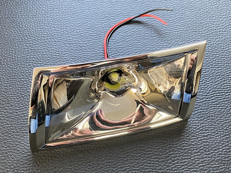 Queste nuove luci laterali sostituiscono le vecchie griglie del clacson e utilizzano i punti di montaggio originali nei parafanghi anteriori.