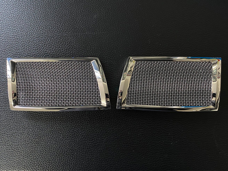 Disponibili con cornice cromata o nera satinata, si attaccano utilizzando i punti di montaggio originali della griglia del clacson e si avvitano dal retro.
