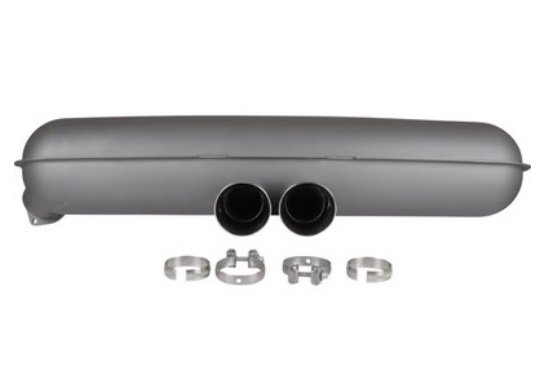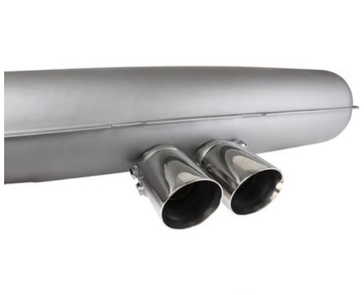 Questo scarico a doppia uscita centrale, realizzato in acciaio alluminato, è appositamente realizzato per mantenere il livello sonoro a "livello parlato" durante la guida. Al minimo, l'auto suona potente e sportiva. La guida in città e la crociera non sono più rumorose di 76 dB nell'auto. La risonanza/il ronzio sono prossimi allo zero! In caso di forte accelerazione e guida sportiva, produce un suono potente ma sommesso che non diventa mai troppo forte. Non supera gli 85 dB durante la guida intensa. La scelta preferita e ovvia.