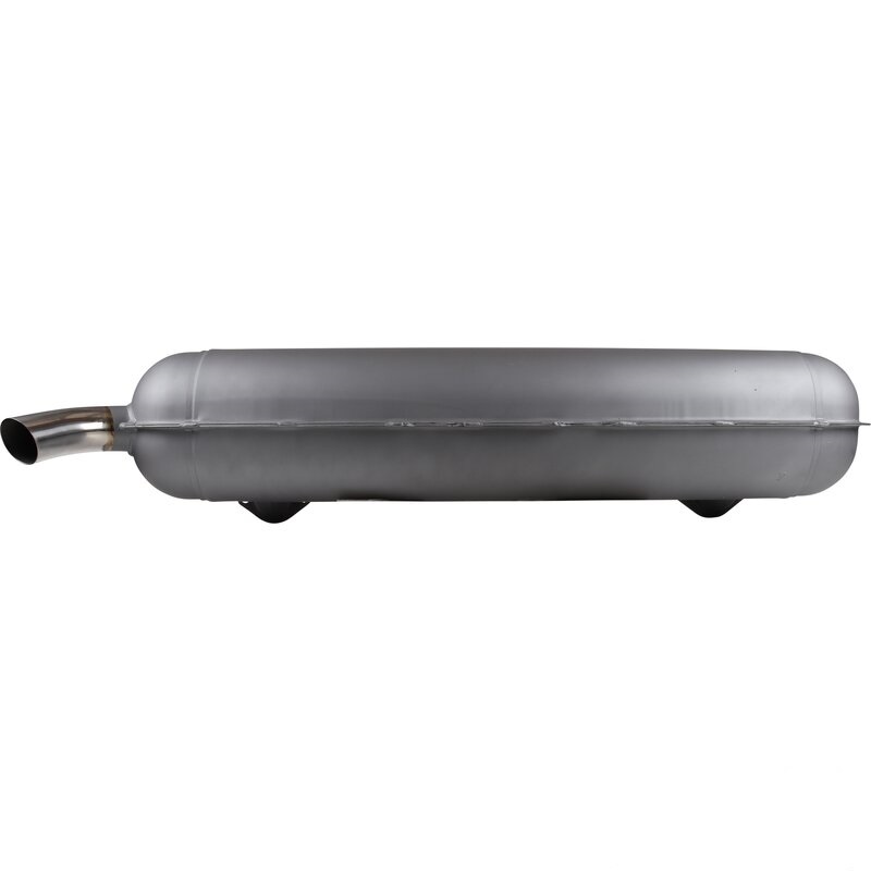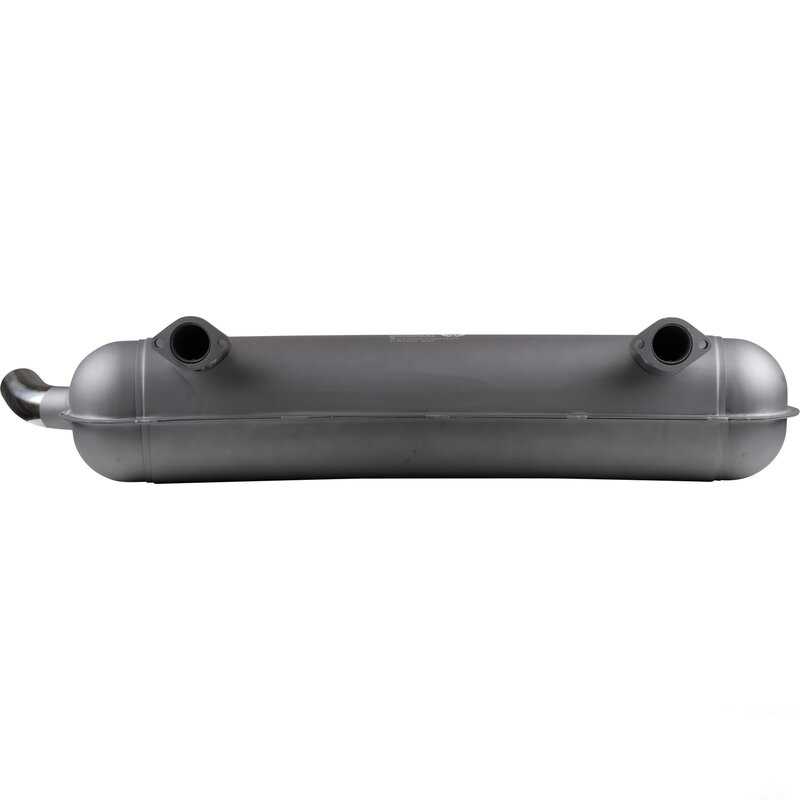 Silenziatore di scarico con doppia entrata e singolo, terminale di scarico angolato Ø57 mm lucidato. Scudo termico in stile OEM iniziale