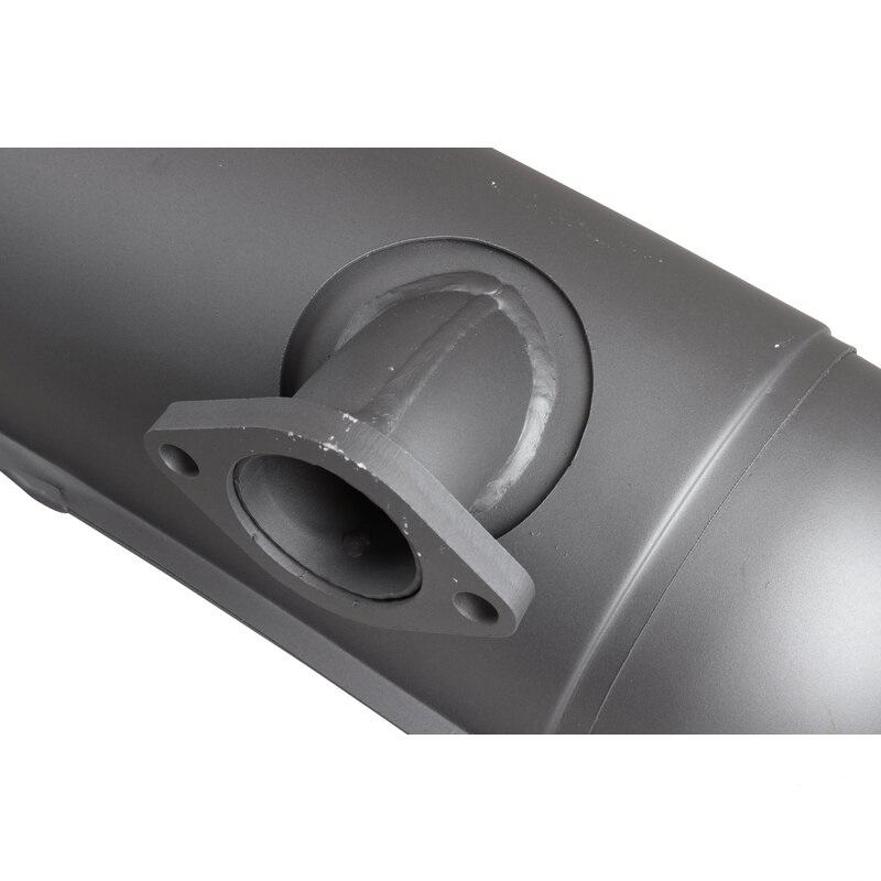 Marmitta di scarico con doppia entrata e singola, verniciata in grigio, terminale di scarico Ø57 mm e terminale di scarico cromato. Scudo termico in stile OEM iniziale