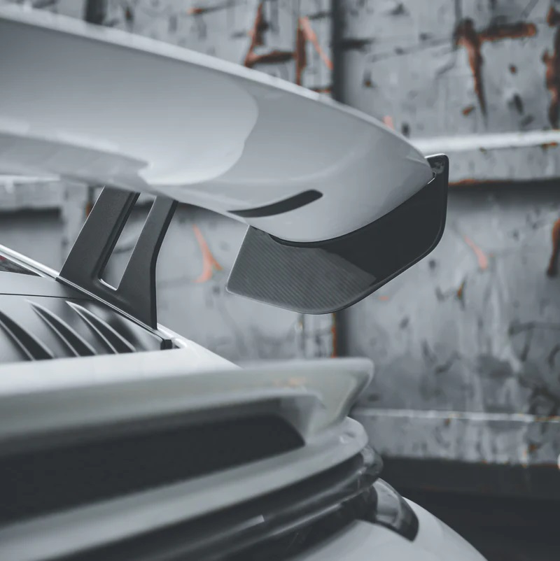 Le piastre terminali più grandi aiutano a gestire il flusso d'aria attorno all'ala posteriore, riducendo i vortici e la resistenza, offrendo quindi un miglioramento dell'efficienza aerodinamica e dell'aspetto allo stesso tempo. Il nostro design si basa sulle unità OEM correggendo due linee importanti, la prima è l'ala posteriore a coda d'anatra e l'altra si riversa negli archi posteriori e nel finestrino. Un perfetto connubio di forma e funzione.