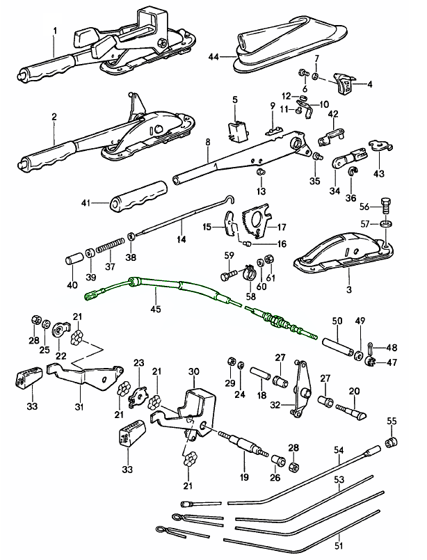 Questa molla di pressione è un elemento fondamentale del gruppo leva e cavo del freno a mano, in quanto mantiene la corretta tensione di ritorno e la corretta sensibilità di innesto. Garantisce il corretto funzionamento della leva del freno a mano, fornendo una resistenza costante e un bloccaggio affidabile quando applicata.